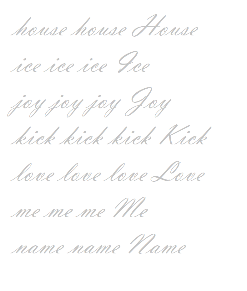 house, ice, joy, kick, love, me, name 영어필기체 연습 워크시트입니다.