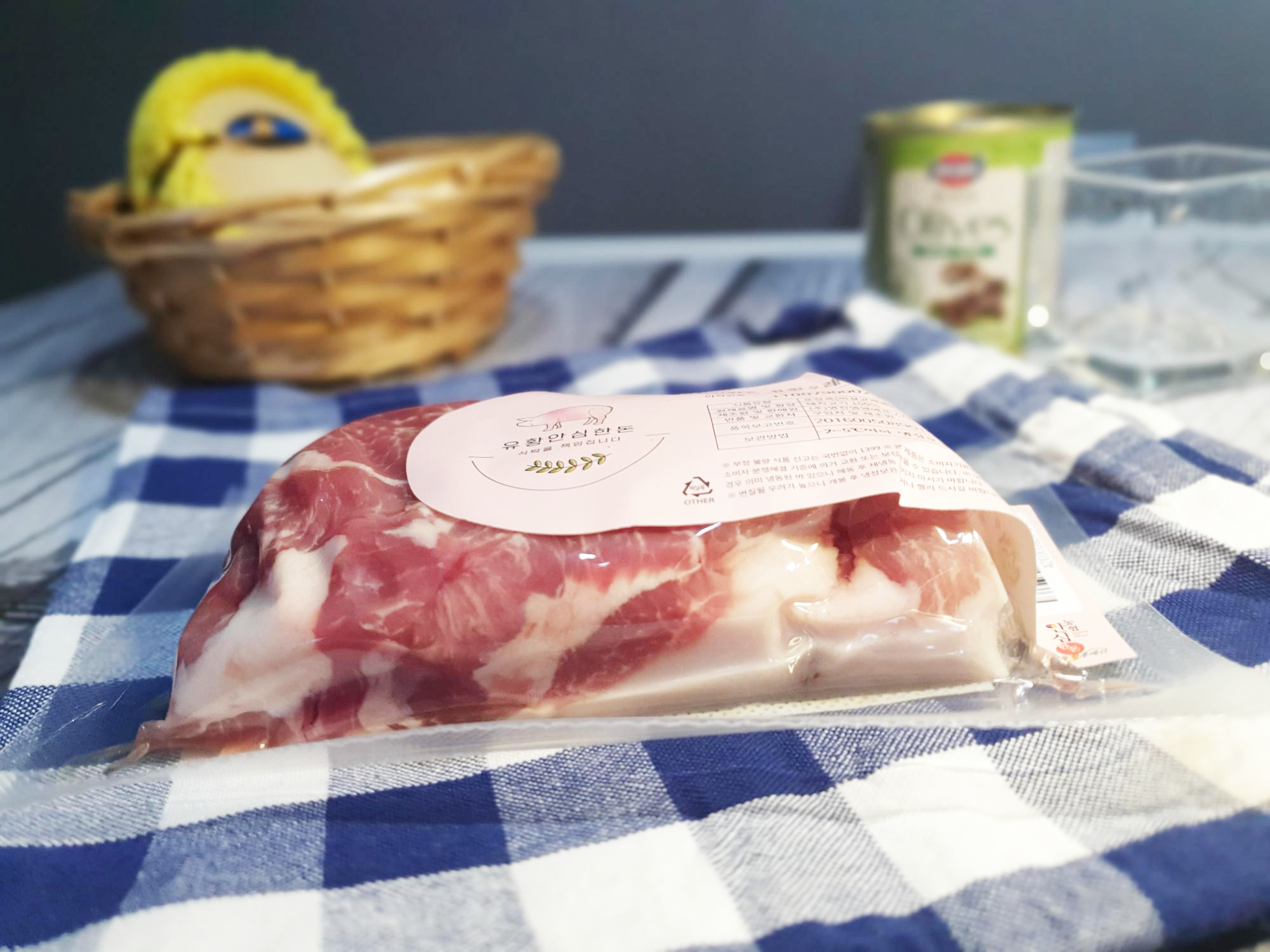 1. 돼지고기 앞다리살에 붙은 지방을 제거해 줍니다. (적당히 남겨두셔도 됩니다.)
