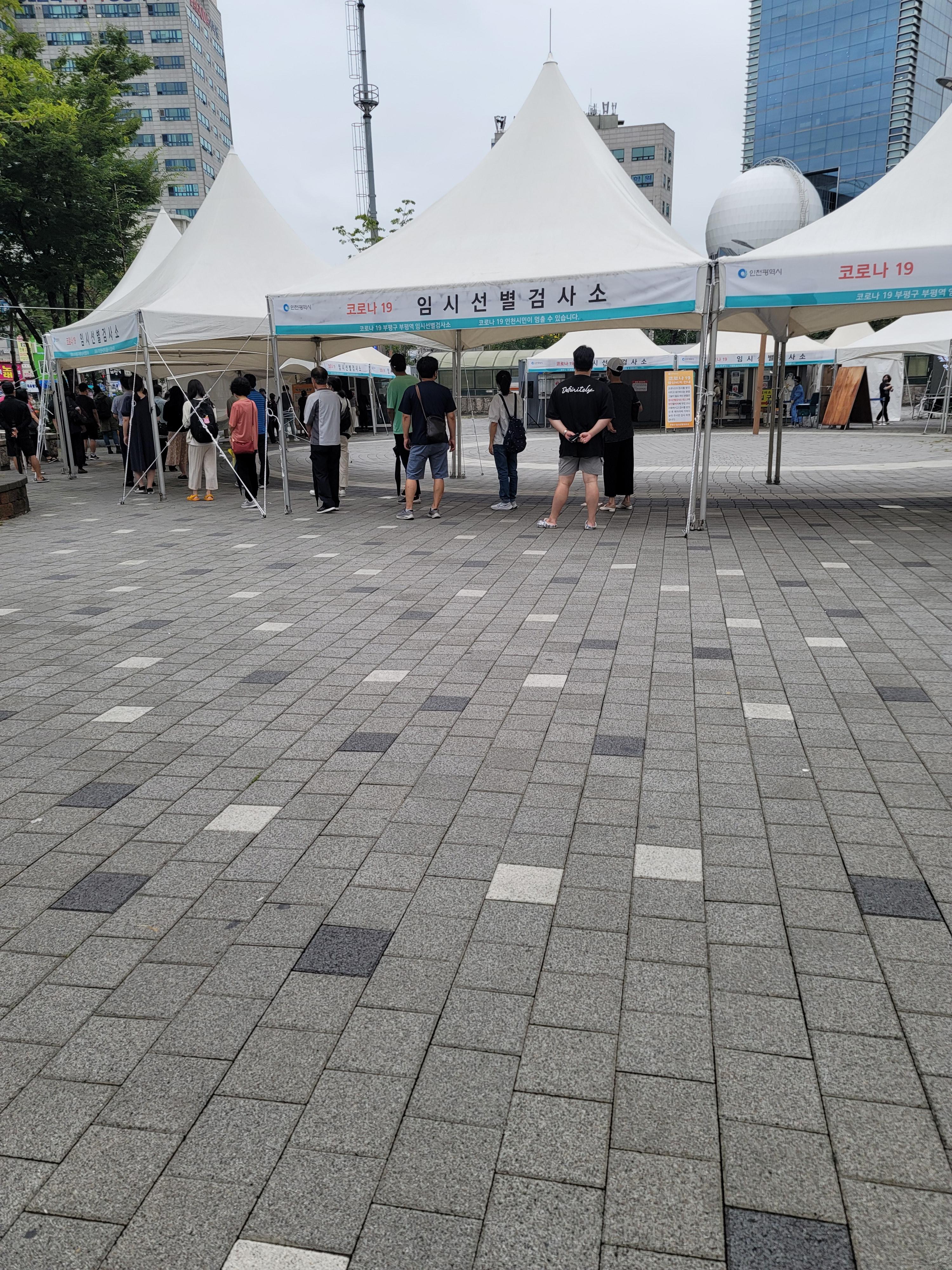 아이가 단순검사자(단순접촉자)로 분류되어 문자가 오자마자 부평구 보건소로 코로나검사하러 갔습니다. 부평구 보건소는 검사 운영시간이 긴 편이어서 저녁 7시 50분쯤에도 받을 수 있었습니다. 줄은 아주 긴 편은 아니었지만 (평일, 비옴) 그래도 사람이 없는건 아니었습니다.