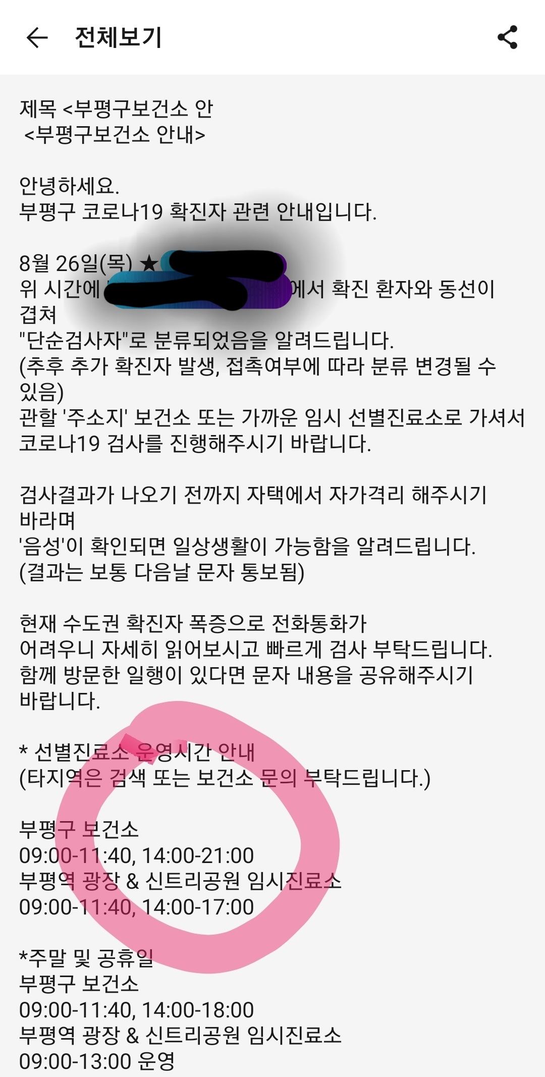 하지만 단순검사자, 단순접촉자에 관해서는 알려진게 없어서 궁금하실 텐데요, 단순접촉자는 확진자의 동선안에서 스치거나 지나간 정도의 경미한 접촉이 있었을 경우에 해당하며 지자체나 보건소에서 연락을 받게 됩니다. 지자체에서 업주나 학원등 업체로 연락을 해 개별 연락을 하기도합니다. 코로나단순접촉자의 경우는 아래와 같은 문자를 받게됩니다.