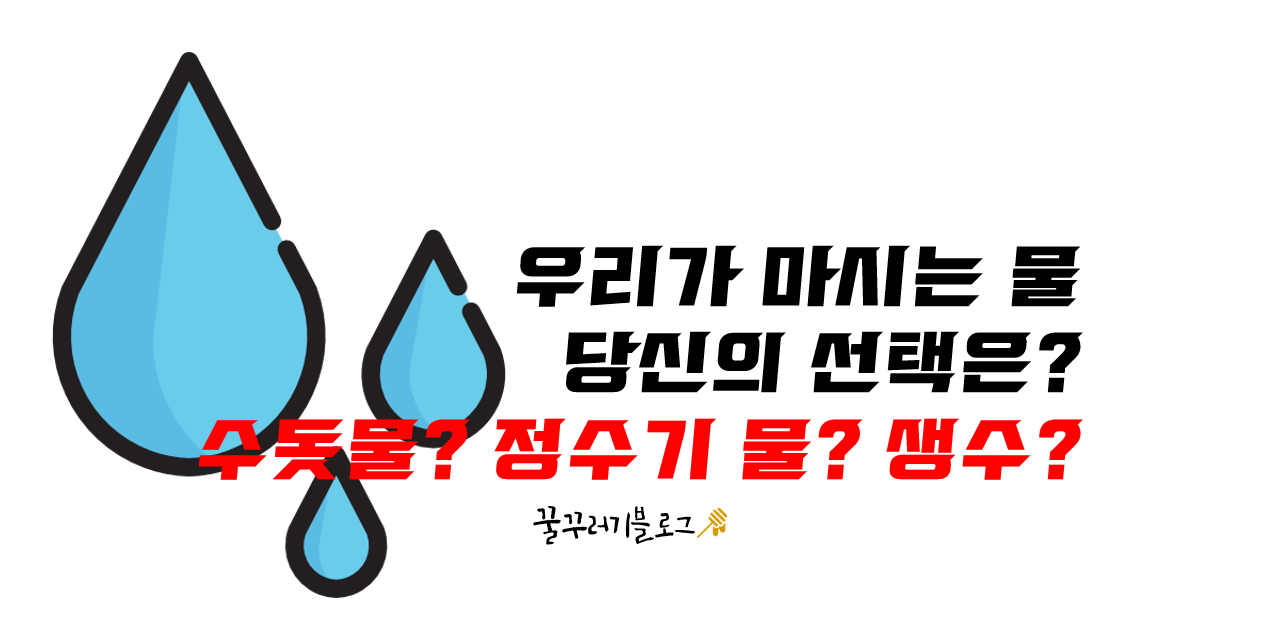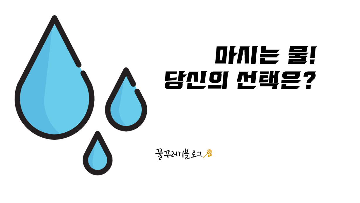 평소에 우리가 먹는 물의 종류는 수돗물, 생수 그리고 정수기 물 정도로 추려질 것 같습니다.