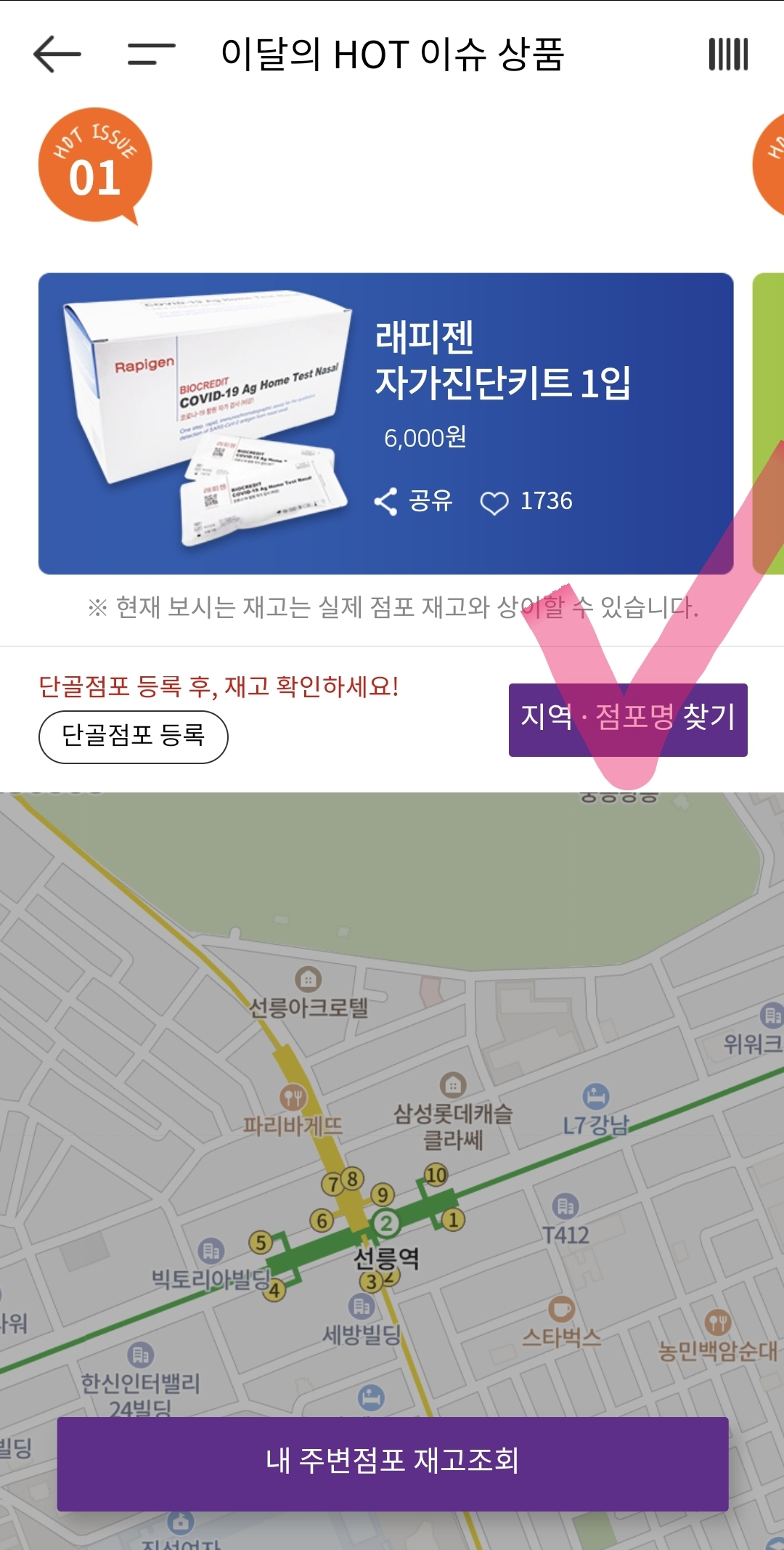 자가진단키트 구매꿀팁은 편의점 재고 입고시간확인후 바로 전화해보시거나 어플재고확인후 가 보세요. 보건소나 큰 병원 호흡기치료센터 근처에는 그나마 재고가있다고 합니다.