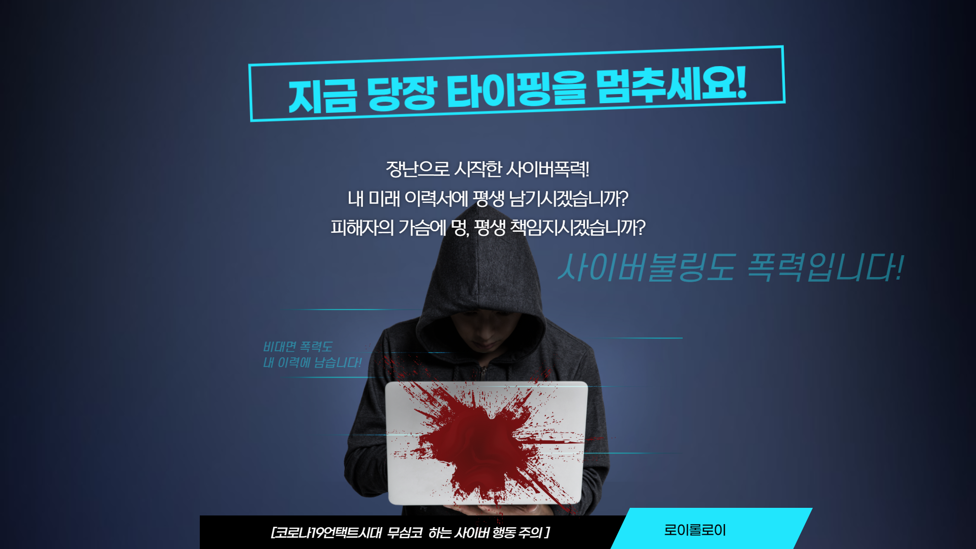 사이버 폭력은 보통 가해자들이 장난으로 별 생각 없이 시작하지만 피해자들을 우울감과 불안감 스트레스를 경험하게 만듭니다. 실제로 사이버폭력의 피해학생들은 스트레스와 우울, 불안을 31.7%가 경험했다고 대답했고 사이버폭력이 정신적인 고통은 물론 실제 사회에서도 부정적 영향을 주는 것으로 나타났습니다.