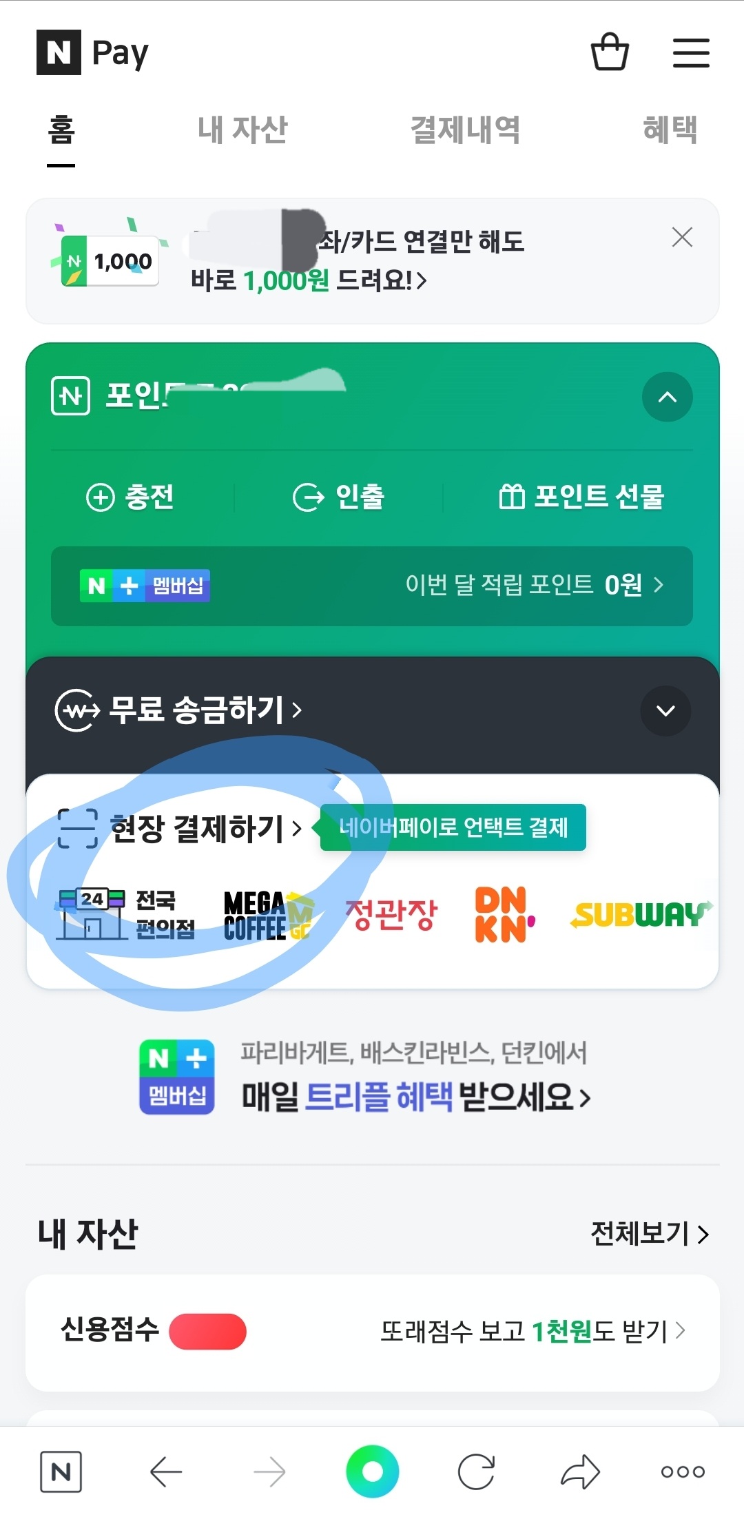 제가 네이버페이를 이용하는 이유는 단 하나, 지갑을 모르고 놓고 왔을때 입니다. 다른페이를 전혀 사용하지 않는 저로선 그나마 사용할 줄 아는게 네이버 페이인데, 다이소 결제를 앞두고 네이버페이 바코드를 찾다 한참 헤맸답니다. 거기 계신 알바분도 네이버페이는 사용안해보셔서 바코드가 어디있는지 모르겠다고 뒤에는 줄섰는데 발동동..