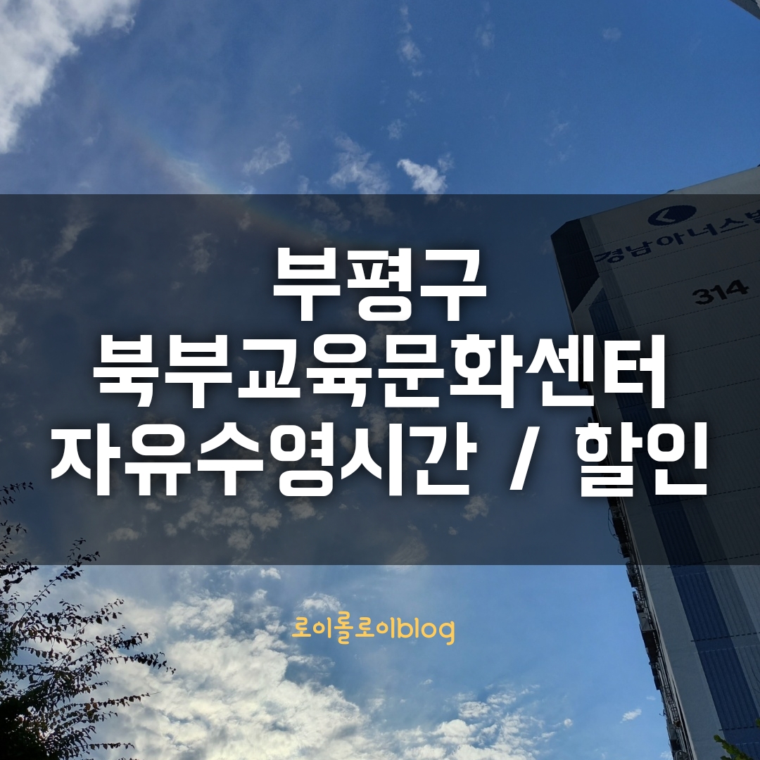 오늘은 어른은 물론 아이들도 가서 자유수영을 할 수 있는 교육청에서 운영하는 공공 수영장, 부평구 북부교육문화센터 수영장 알려드립니다. 아무래도 나라에서 하는 기관이다보니 사 기관보다 친절하거나 서비스 받는 기분은 아니지만 저렴하고 과대하지는 않지만 친절하셔서 저는 만족스러워요.