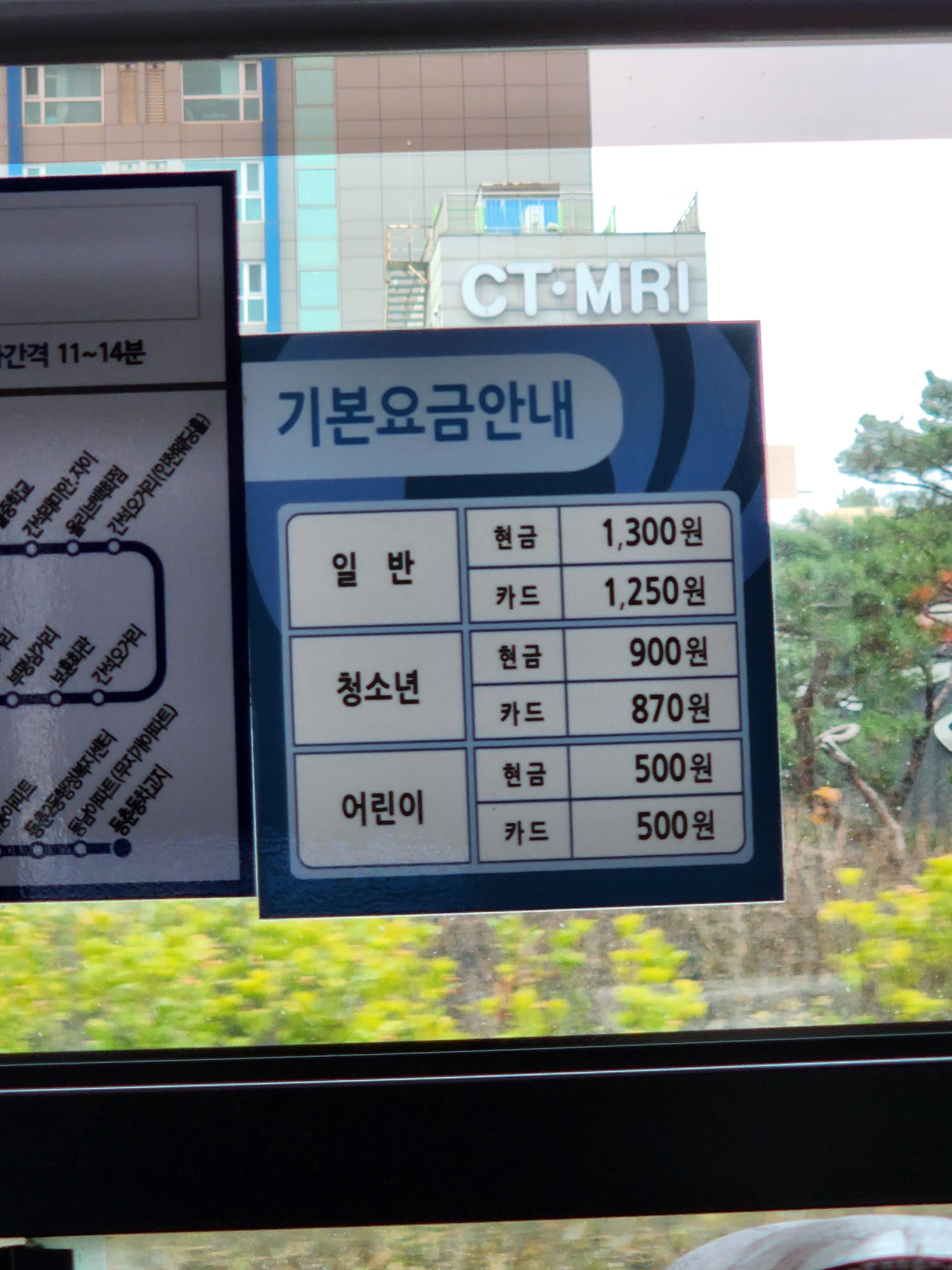 성인, 일반 시내버스요금은 현금 1300원 카드는 1250원 입니다.