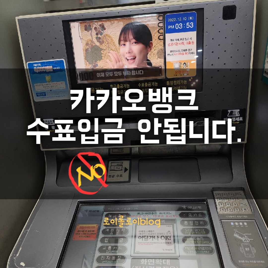 atm기계에 보면 수표입금가능, 현금입금 가능으로 등으로 표시되어 있는데 아무리 수표입금이 가능하다고 써 있어도 카카오뱅크 카드로 입금하기는 안된다는 사실!