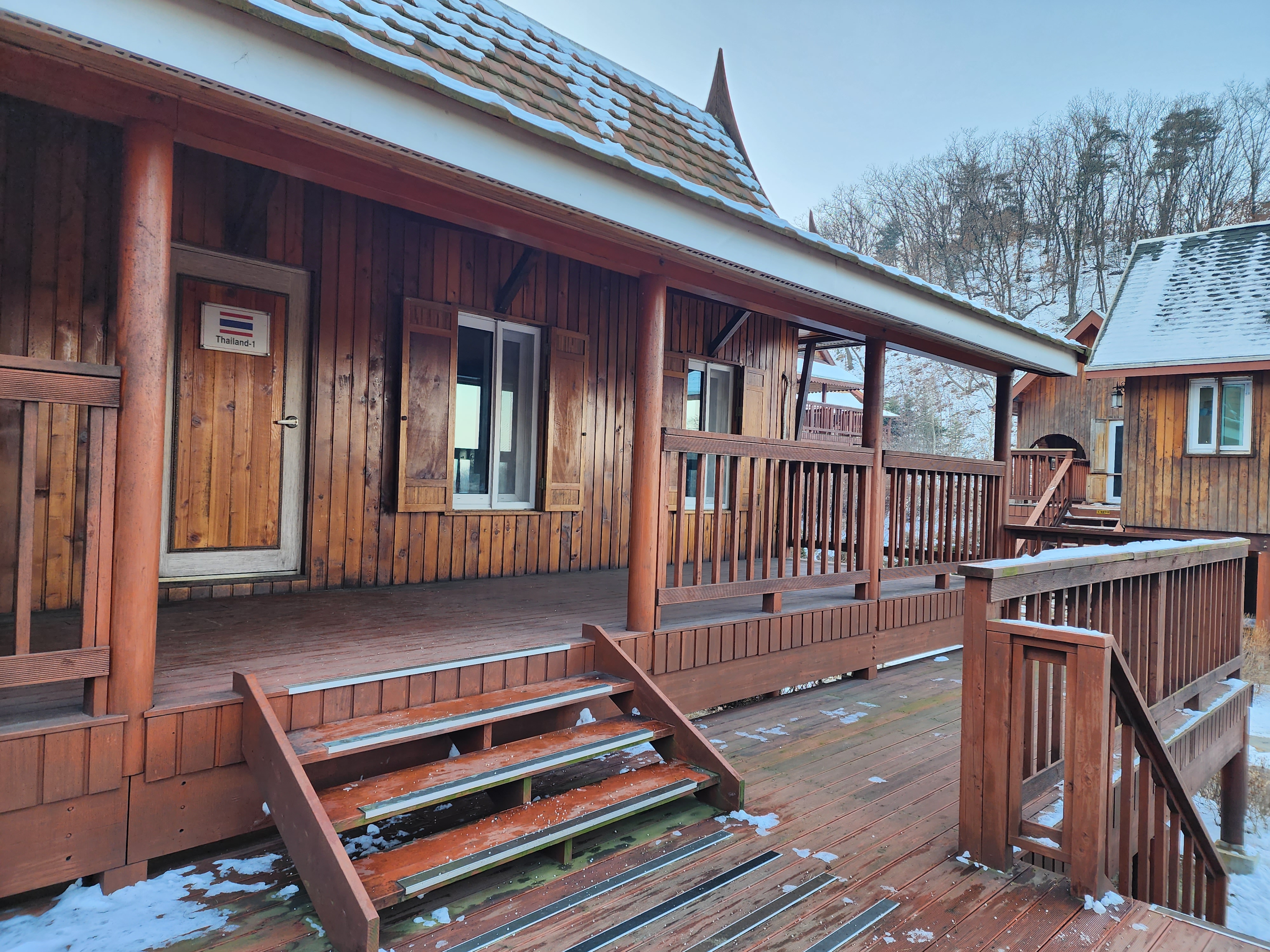 아세안 자연휴양림은 10개의 아세안 테마로 꾸며져 있습니다. 가장 인기 있는 곳은 인도네시아 시설로 외관이 매우 멋있는 전통가옥입니다. 제가 입실한 객실은 태국이었는데 4인이 머물기에 좀 좁았습니다. 외관에 비해 입실해 보시면 시설이 좀 오래되었습니다. 뜨거운 물도 한 사람이 다 소진하게 되면 다시 데우는데 1시간가량 소요됩니다. 시설이 오래된 것, 외관에 비해 내부가 민박 수준이라는 것이 실망스러웠다면, 후끈한 난방과 숲 속의 고요함, 자연 속에 들어와 있는 느낌의 바람 그리고 멋진 건물 외부 모습 그리고 8만 원대의 저렴한 가격은 만족스러웠던 점입니다. 사실 12월 31일에 어디든 예약하기 힘든데 대기를 걸었던 게 연락이 와서 기쁘기도 했고, 부모님과 함께 보낼 수 있어서 더욱 좋았답니다.