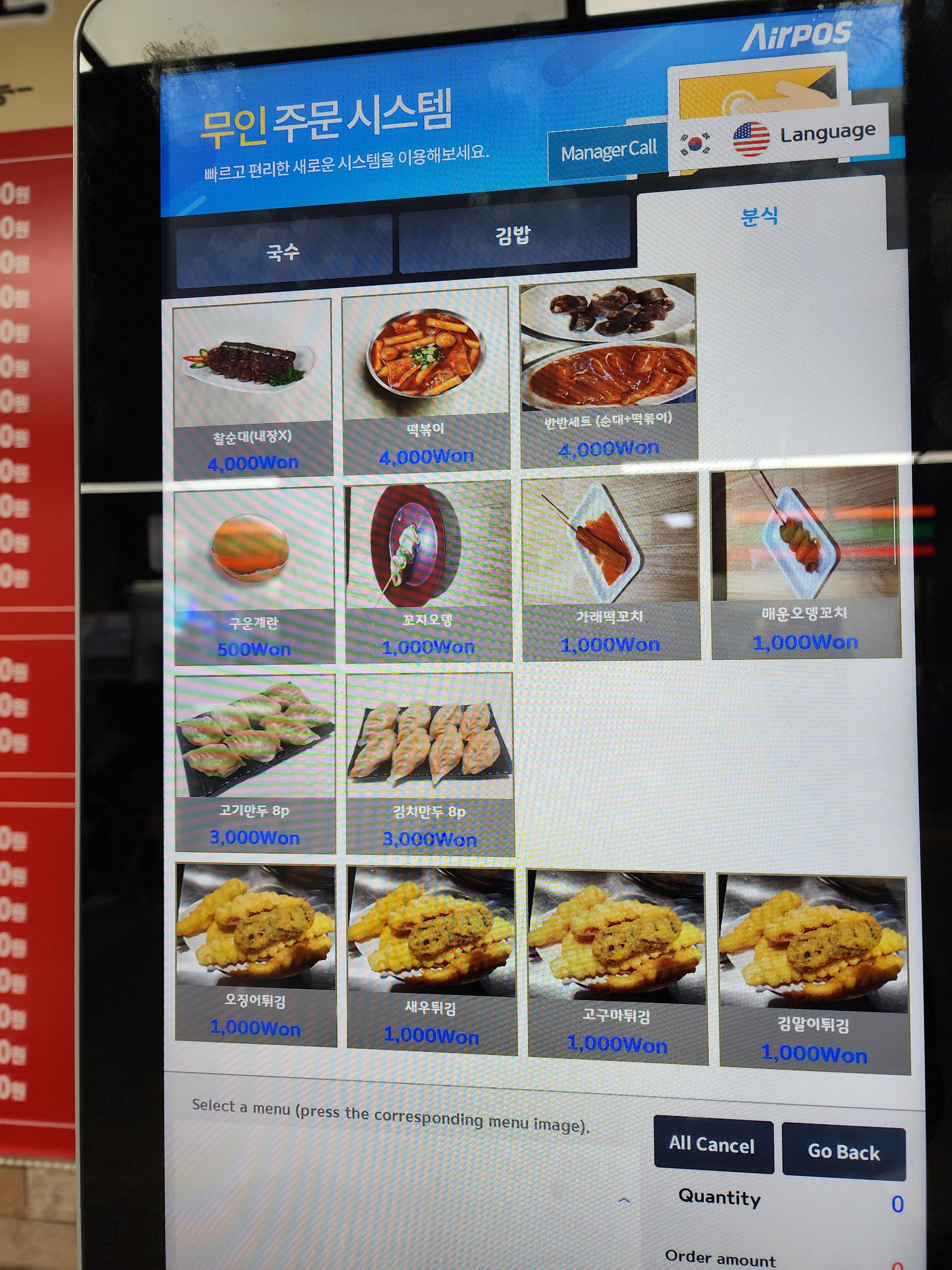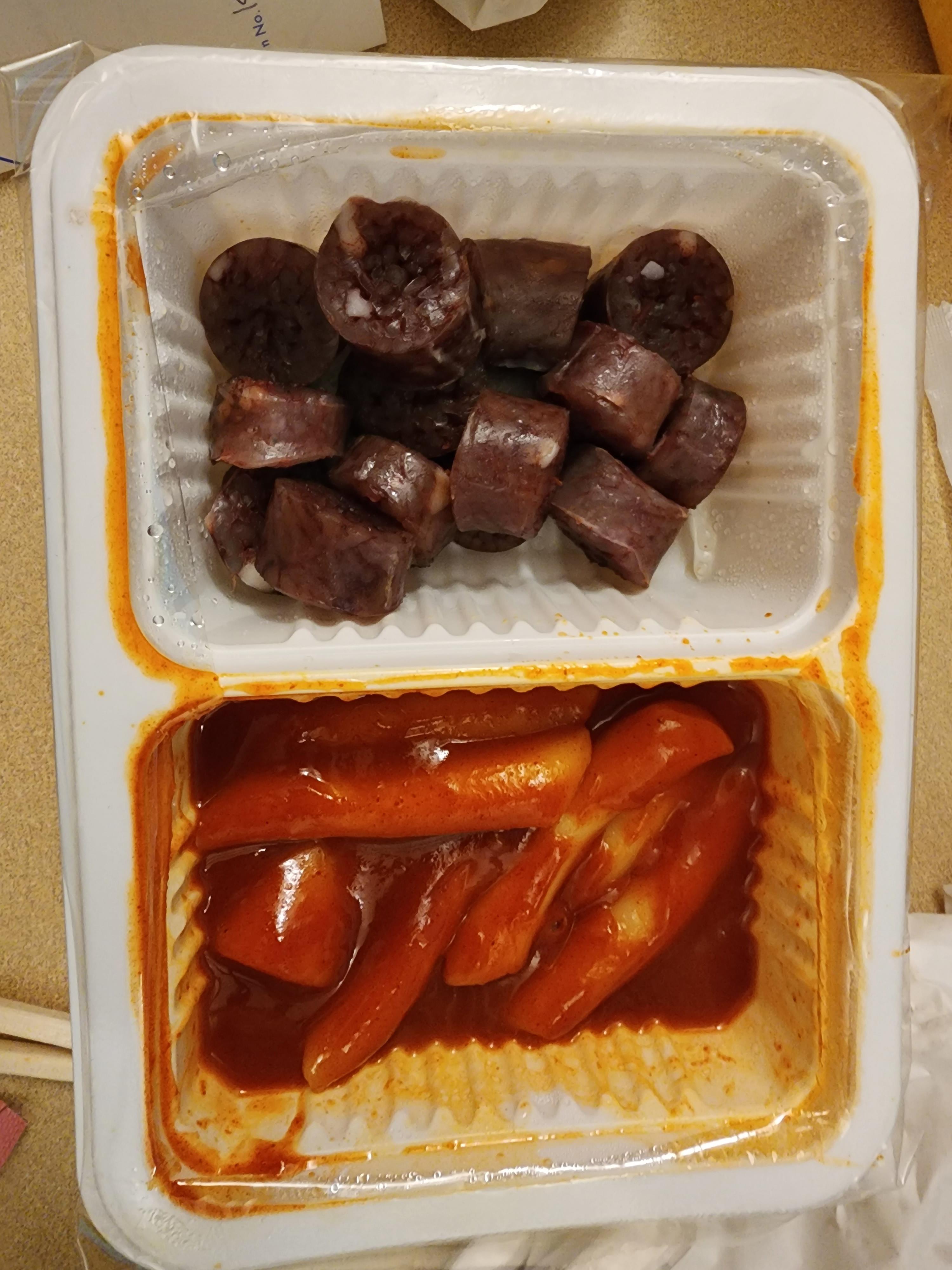 저는 떡볶이 순대 반반과 오징어 튀김을 주문했습니다.