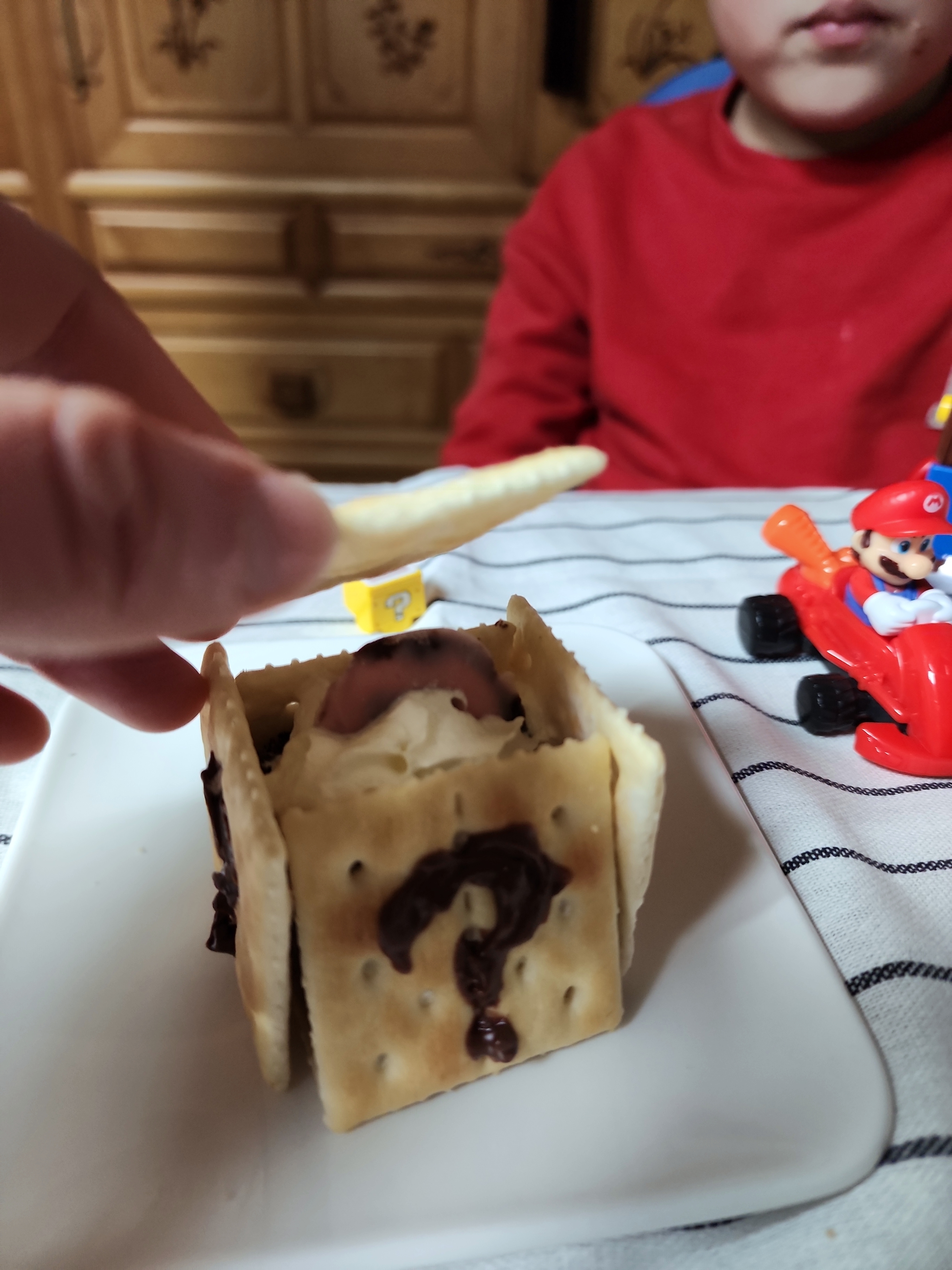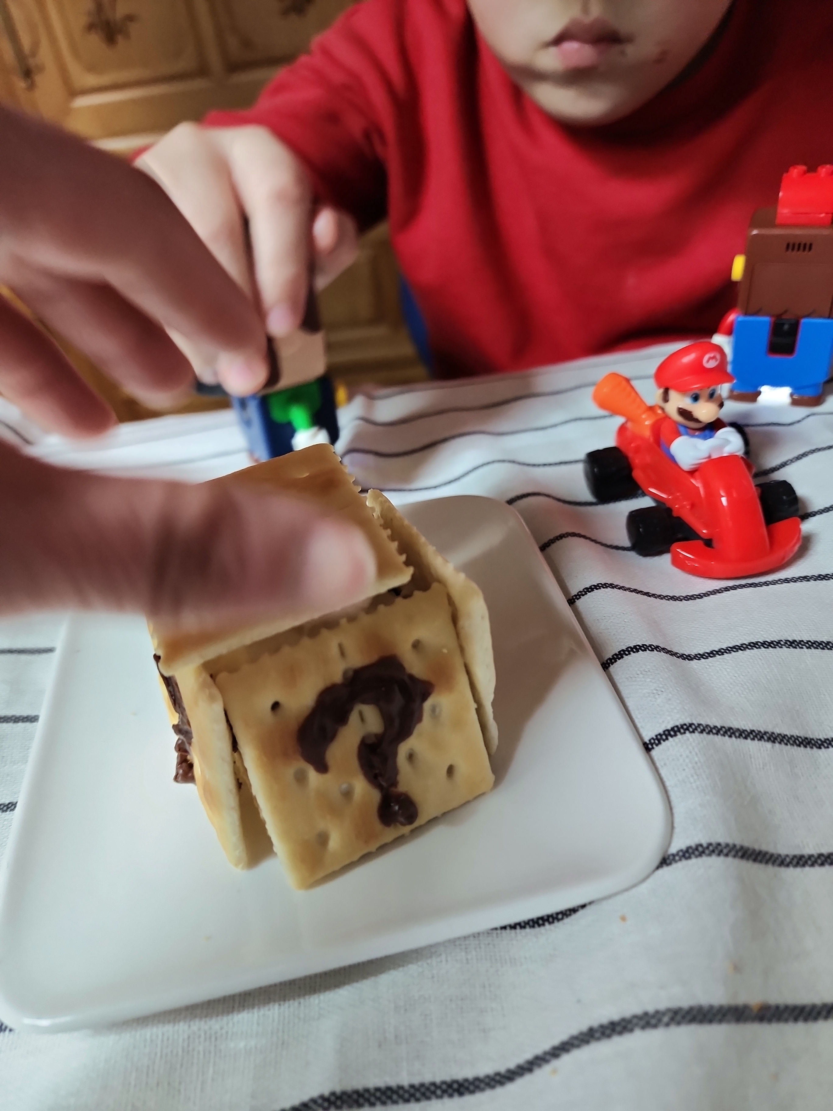 아이가 좋아하는 슈퍼마리오로 디저트를 만들어서 그런지 아주 잘먹네요! 남김없이~