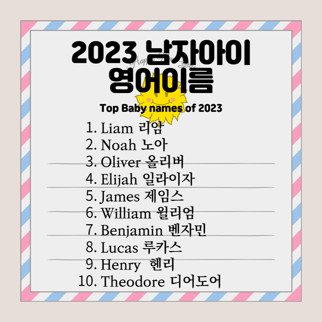 | 3 | Oliver | 올리버 | Latin | Olive tree, 여자이름일 경우 올리비아 남자는 올리버 |