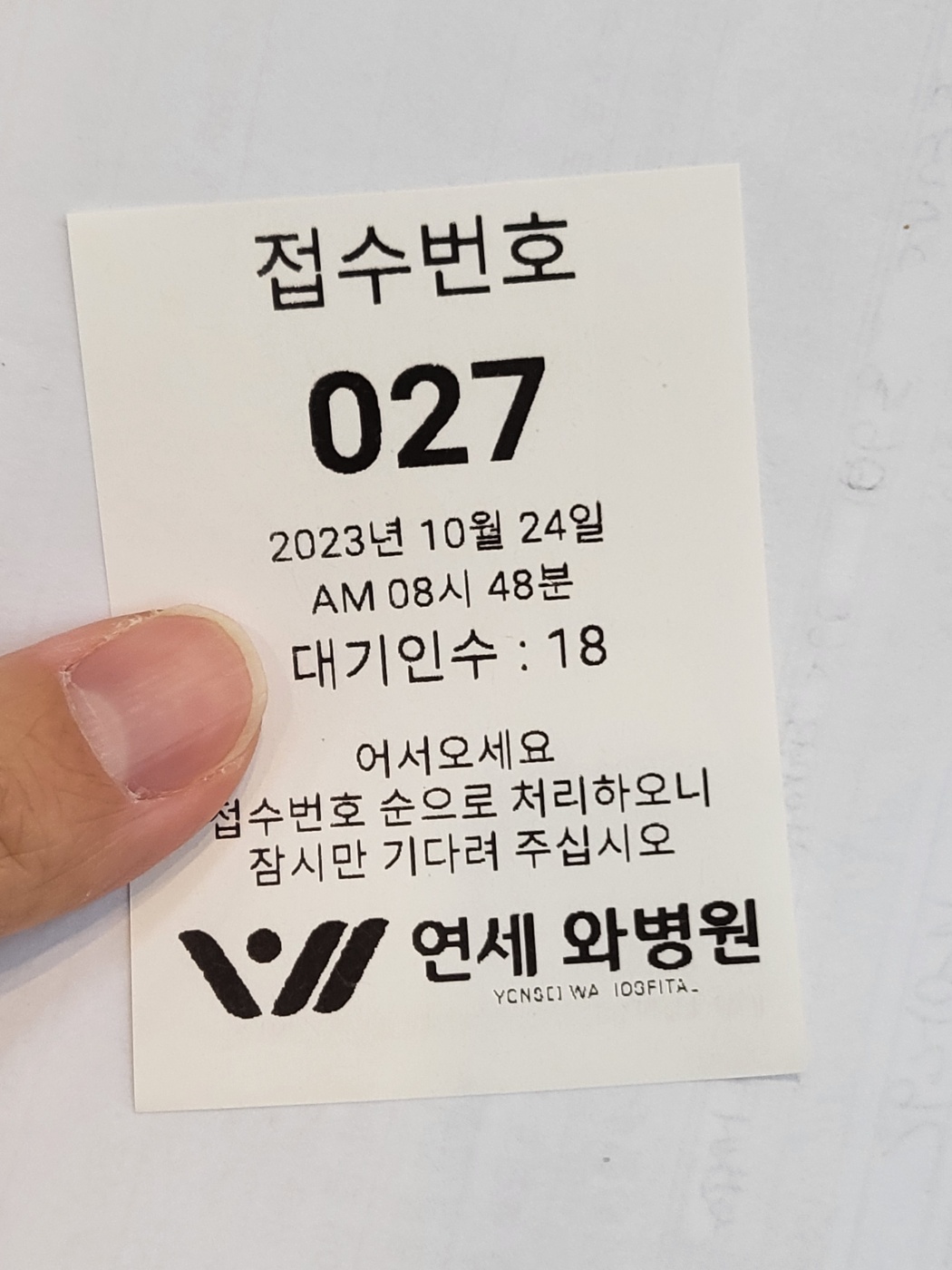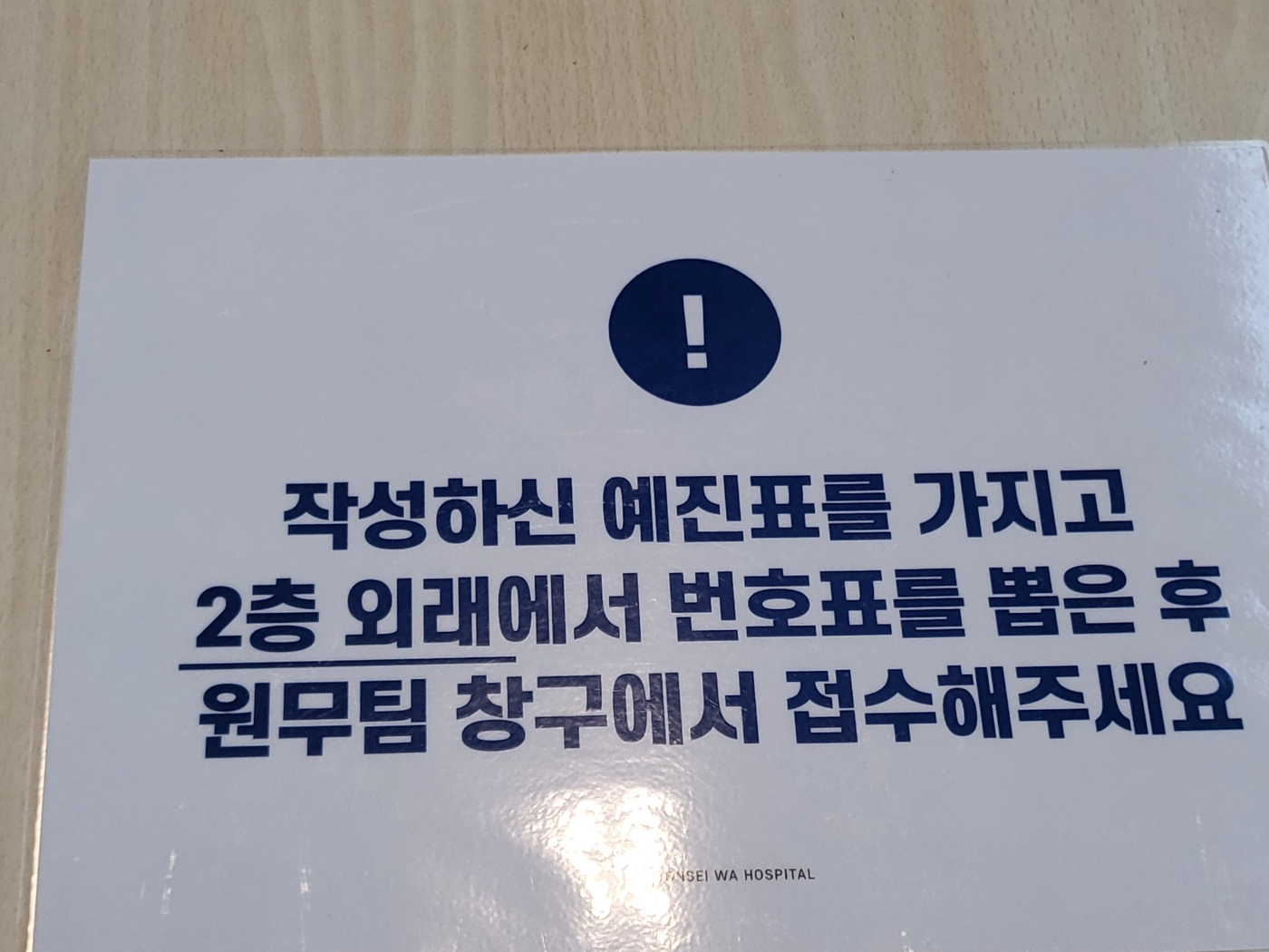 와병원 원무과에서 접수하면 번호를 써 주십니다.