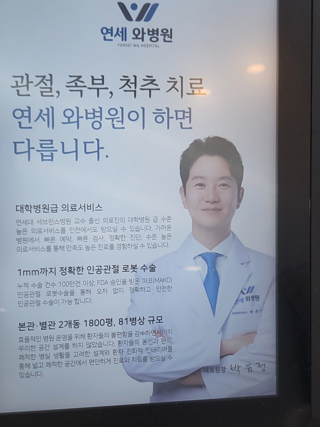 인천와병원은 관절, 족부, 척추치료 전문병원이지만