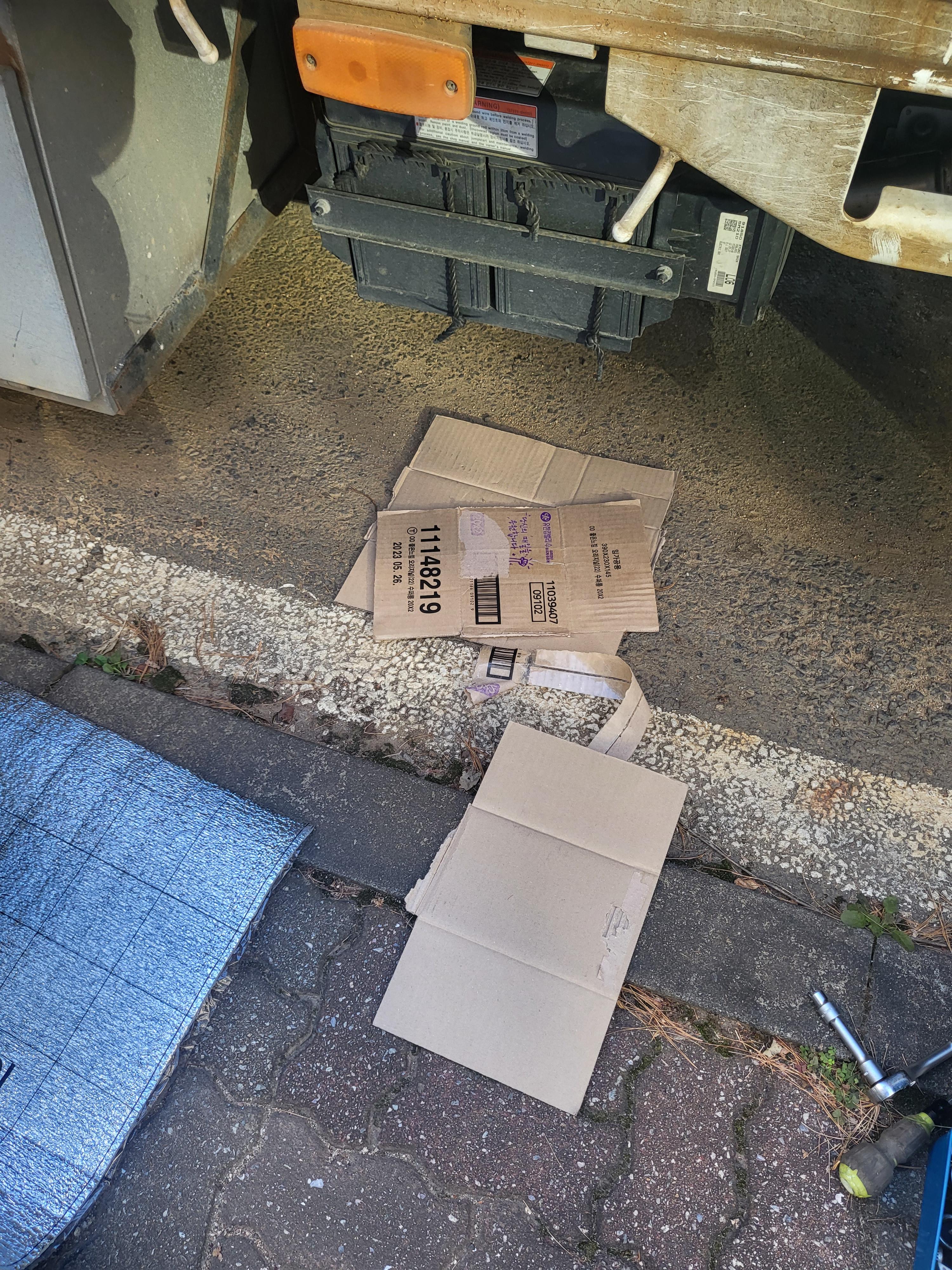 영하의 추위에 발생하는 배터리 방전 방지를 위해 배터리 차단장치라는 것을 사서 달았는데 새벽에 너무 어둡고 추워서 맨손으로 빠져있는 것을 끼우는게 힘들다고 합니다. (빠진것을 다시 껴 넣어야 함) 그래도 방전되는 것 보다 나으니까 배터리 차단장치를 사서 다는 것도 영하의 추위에 화물 자동차 배터리방전 방지를 위해서는 도움이 된다고 봐야겠습니다. 배터리 방전을 방지하는데 효과는 있지만 추위와 어둠에 다시 끼우는 번거로움이 있어 한파주위보가 있는 날은 사용합니다. 하지만 한파까지는 아닌 추위에 방전되지 않을 방법이 없을까 생각하다 박스와 단열재로 배터리를 보호해 보기로 했습니다.