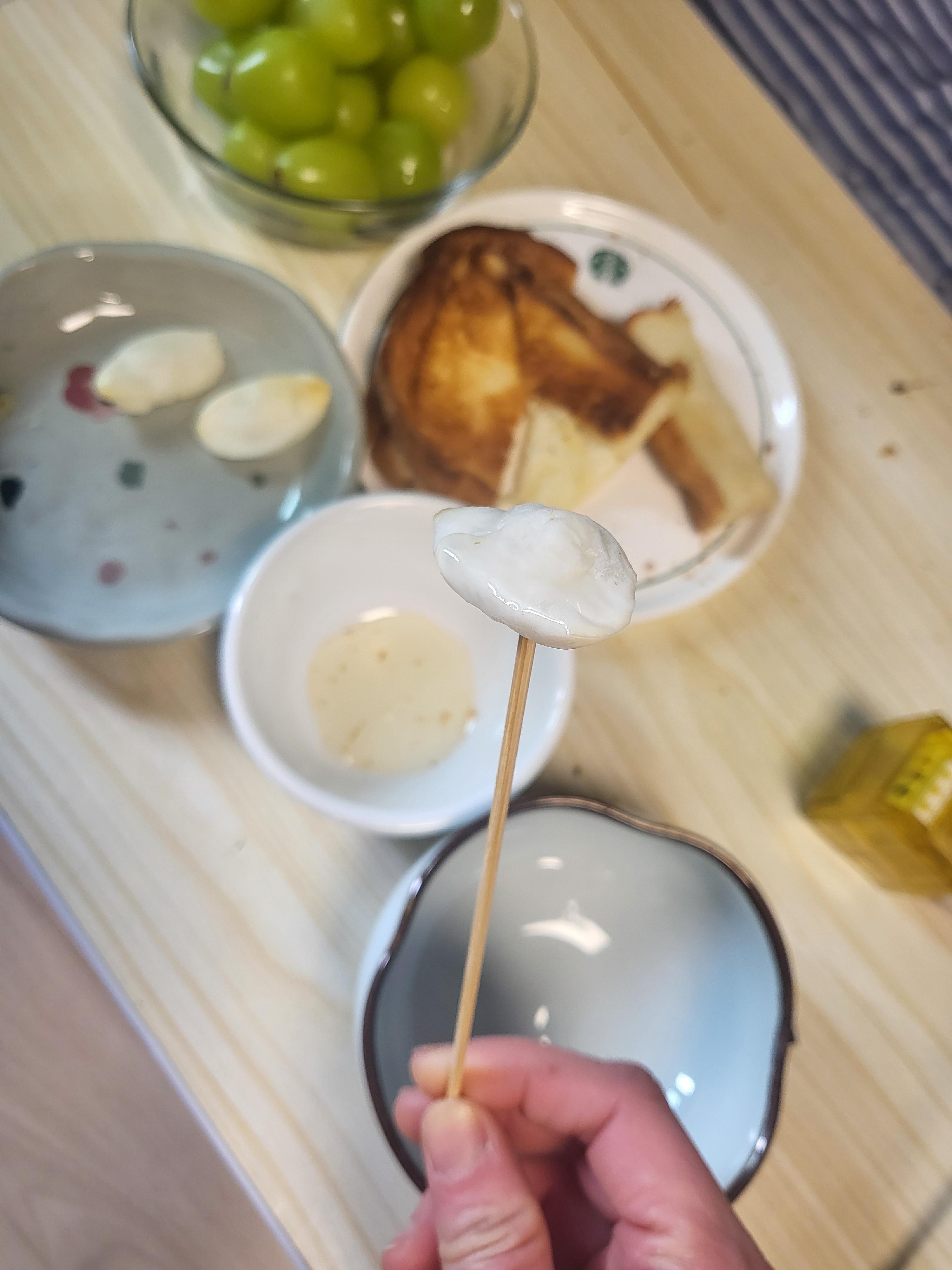 - 떡국떡을 꺼내 조청이나 꿀에 찍어 먹습니다.