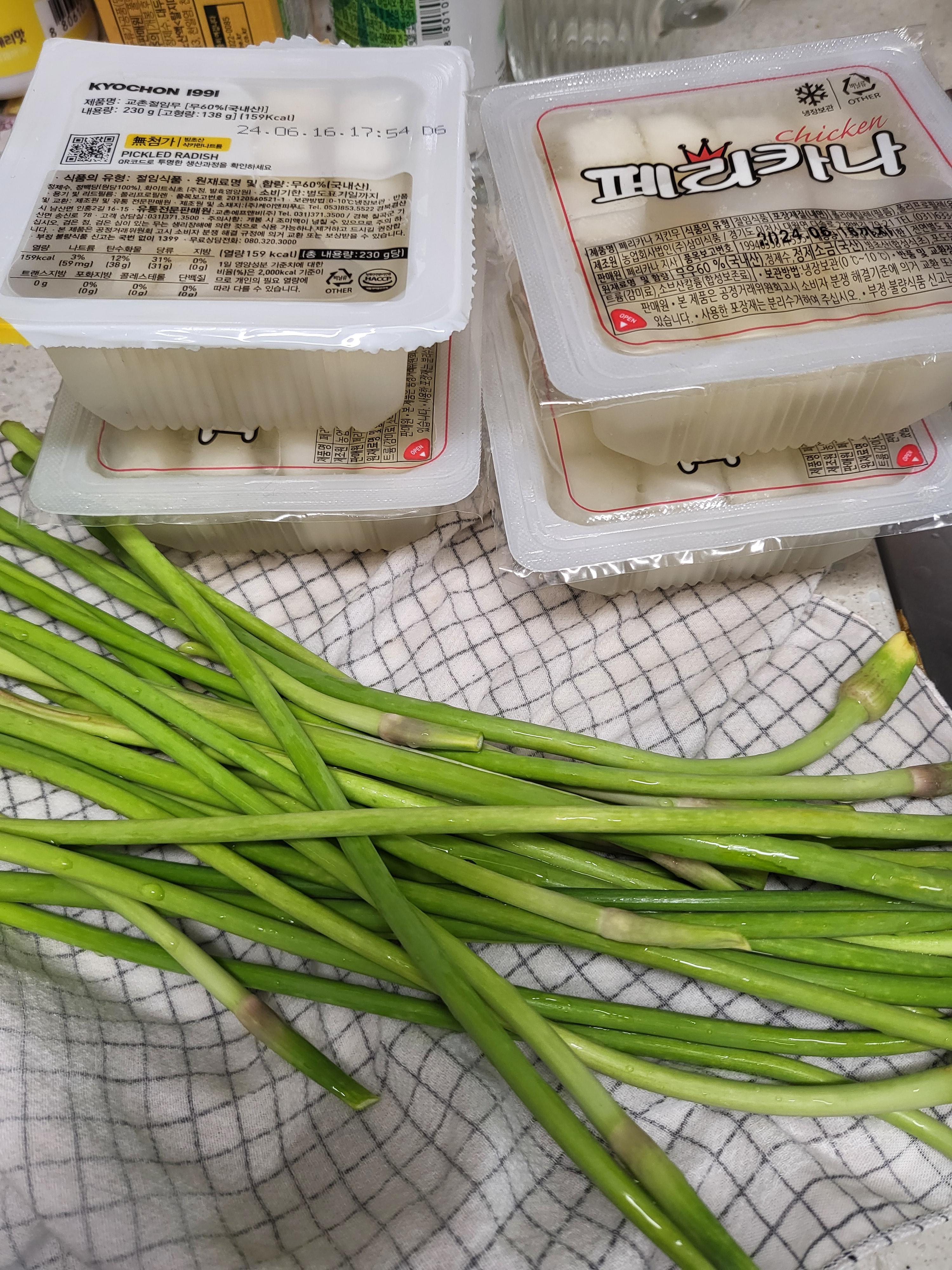 - 치킨무팩 (2~3개), (오이가 있으면 같이 넣습니다.)