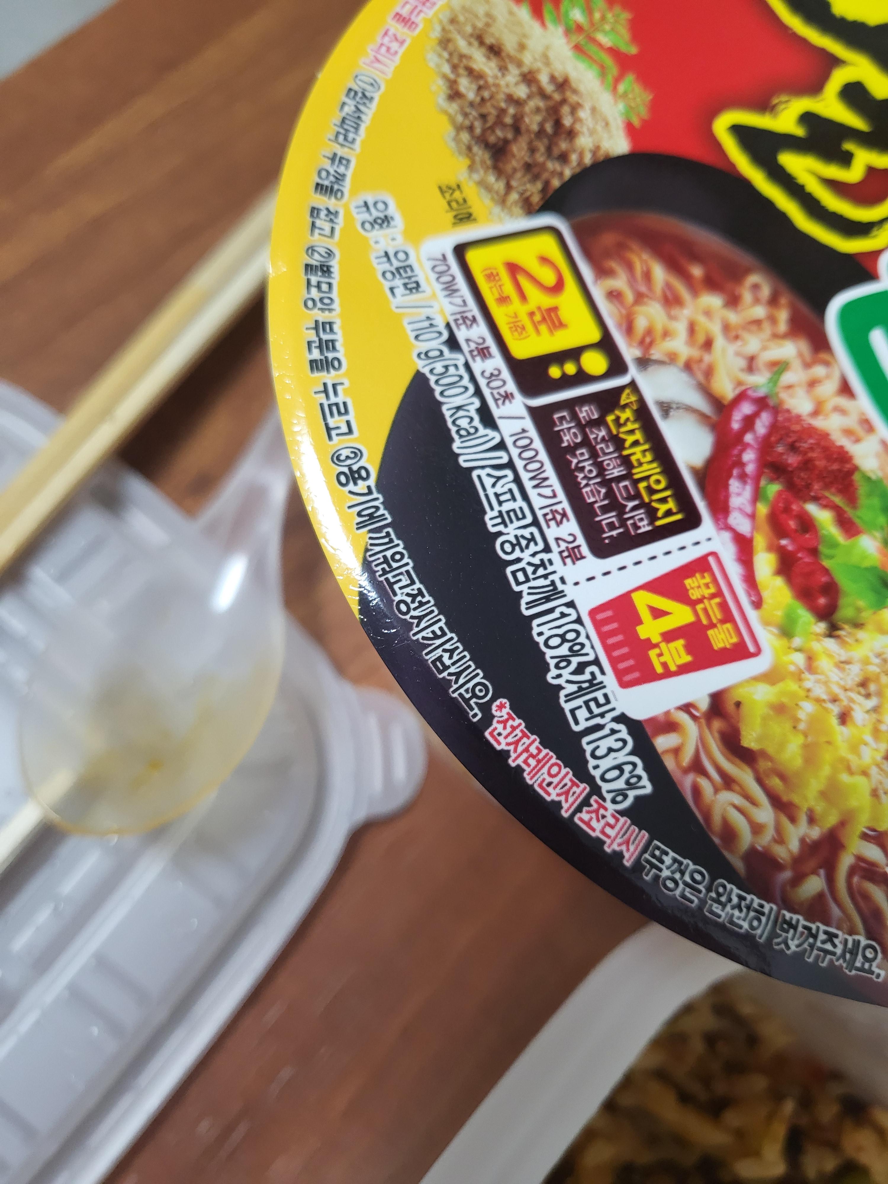 먼저 컵라면이라 그런지 열라면 면발의 쫄깃함은 기대하기 어려웠습니다.