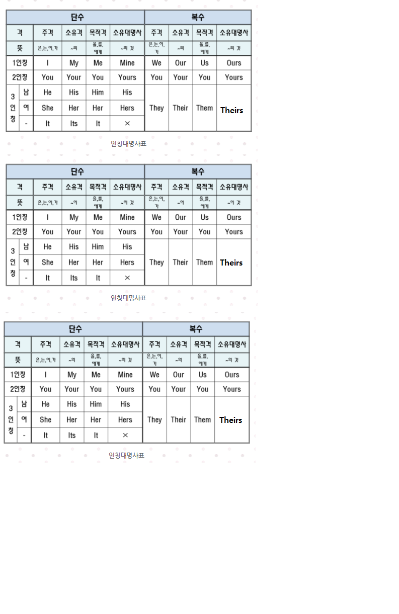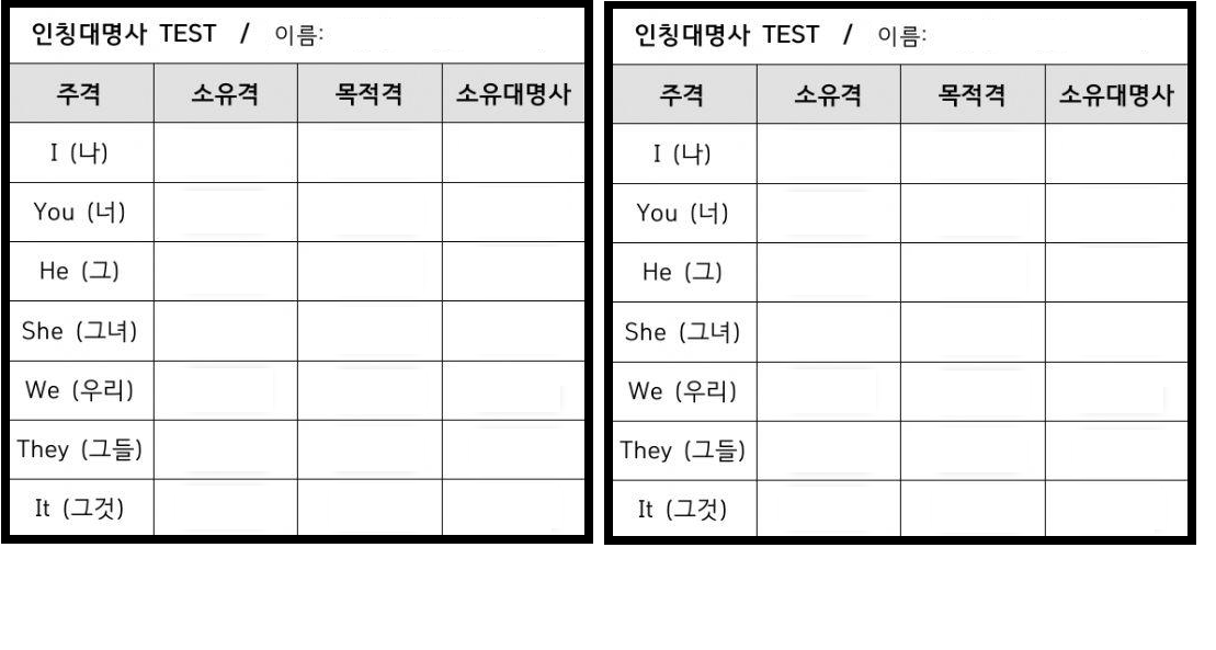 인칭대명사 표 다운로드 / 인칭대명사 test 지 다운로드 / 인칭대명사 시험지 다운로드