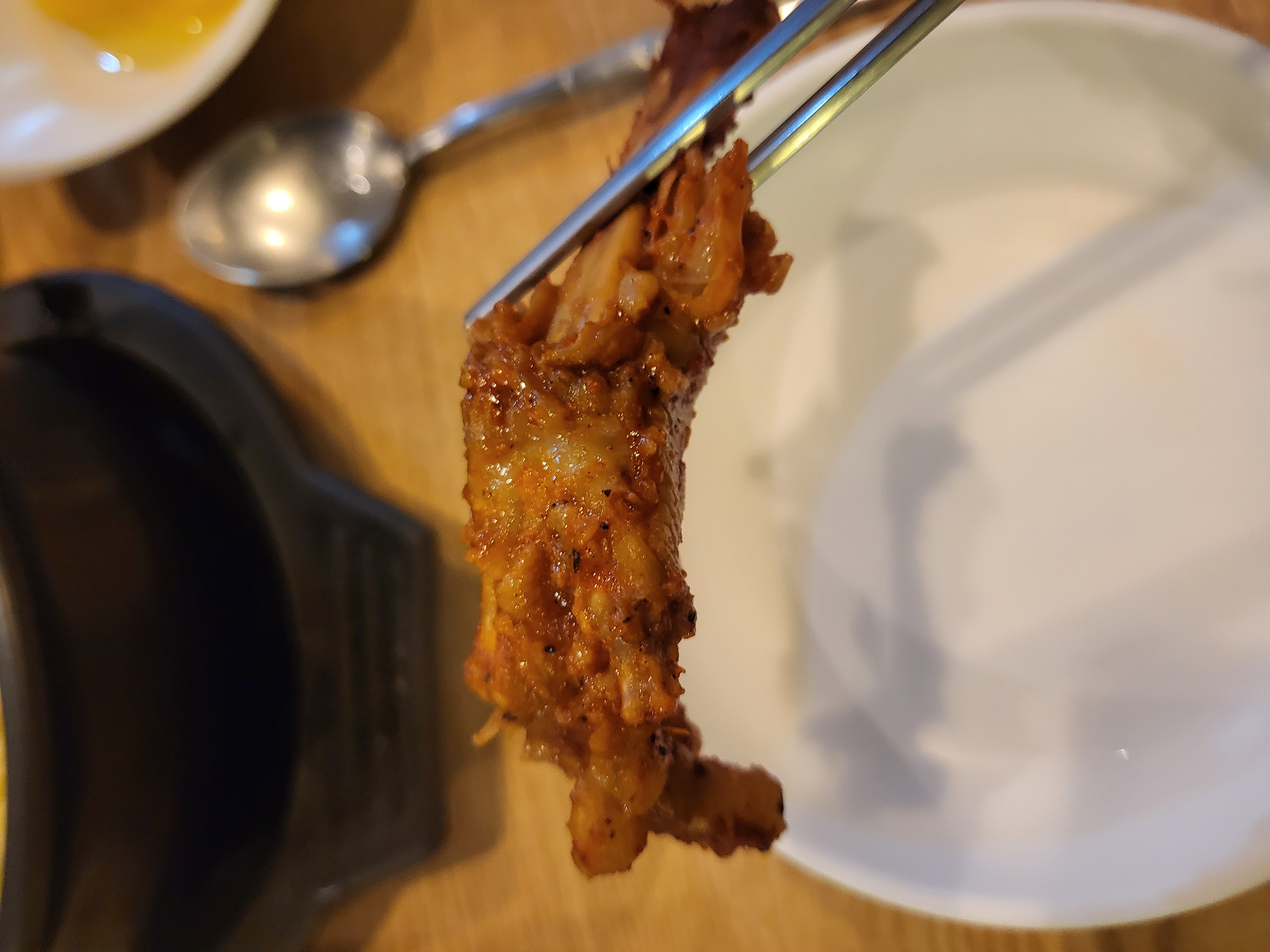 숯불향 가득한 통닭발은 쫄깃하고 육즙도 살아있어요. 다른 통닭발집들은 닭발이 말라 붙어 있는 경우가 많은데,
