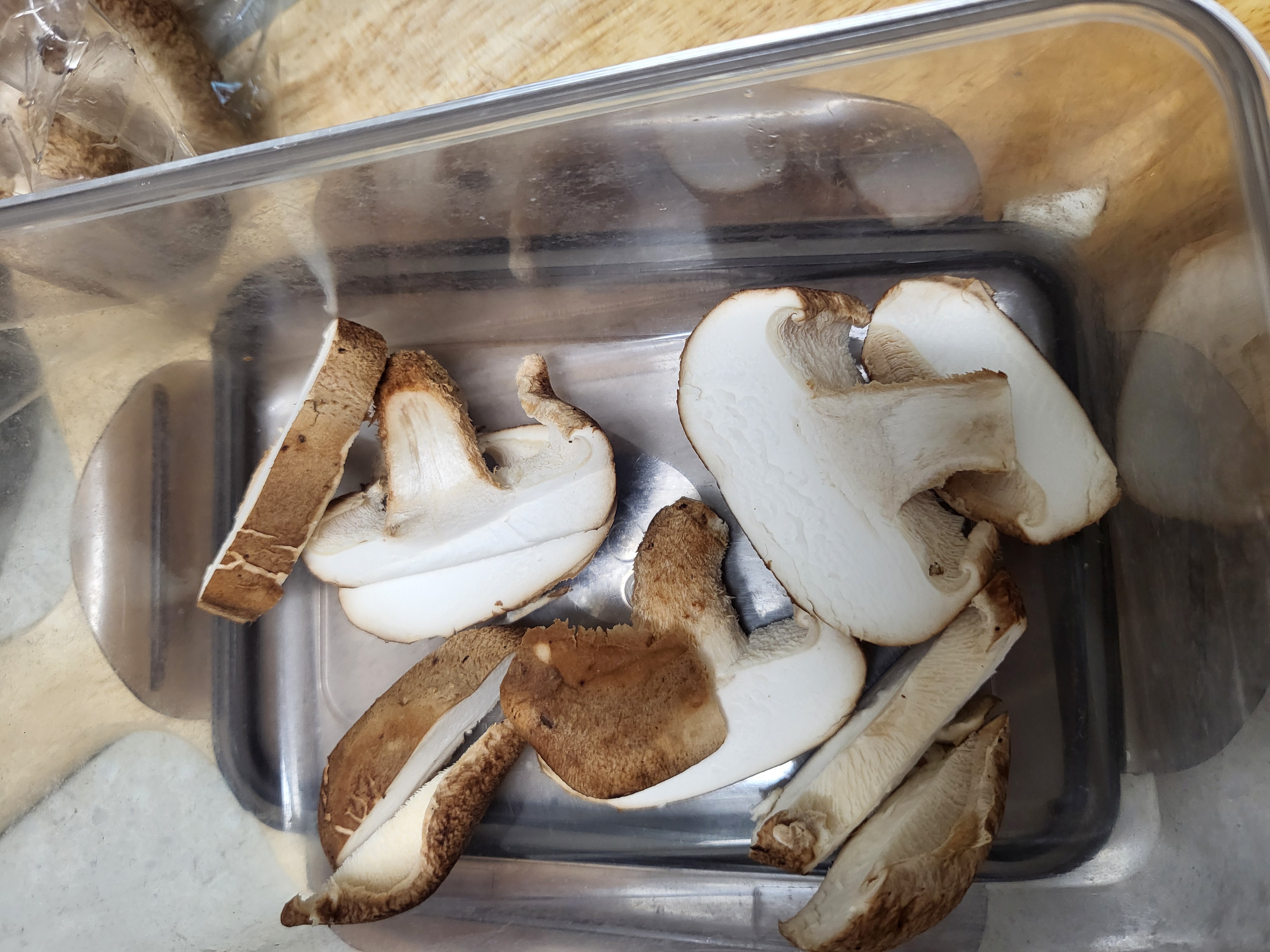 - 표고버섯을 슬라이스 해 바닥에 깔아 줍니다.