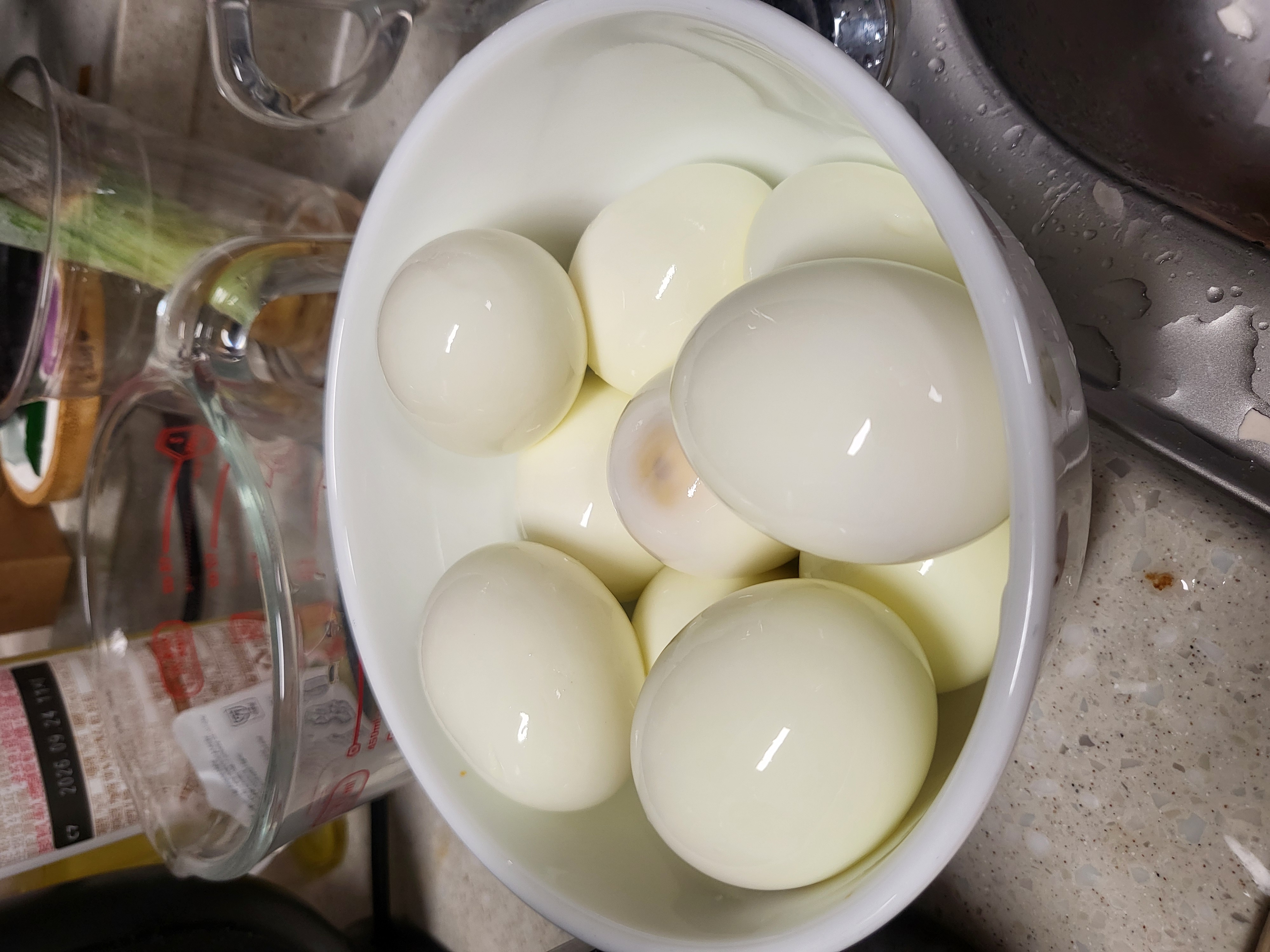 - 삶을 계란을 준비합니다.