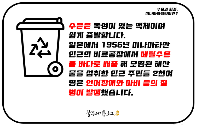 오늘은 수은이 환경과 인체에 얼마나 치명적이며, 미나마타 협약으로 달라진 법에 대해 알려드릴게요.