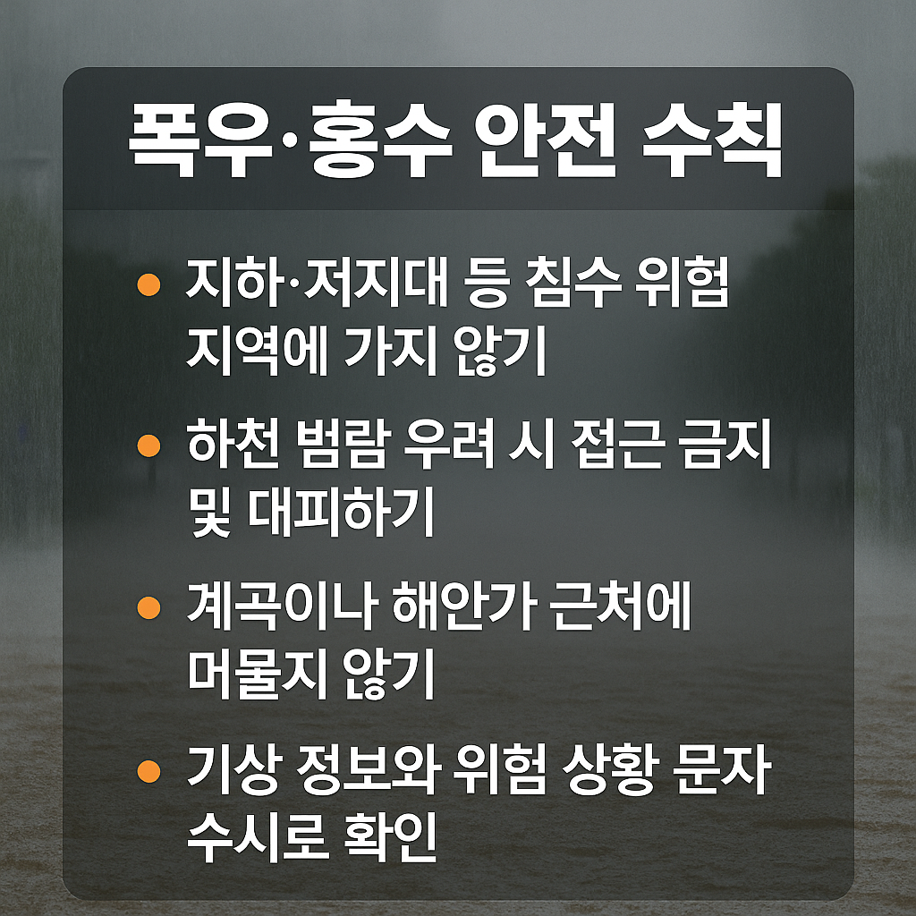 위험 요인 하천 범람, 산사태, 도로침수 및 교통통제 우려 (하상도로·세월교 통제 중).