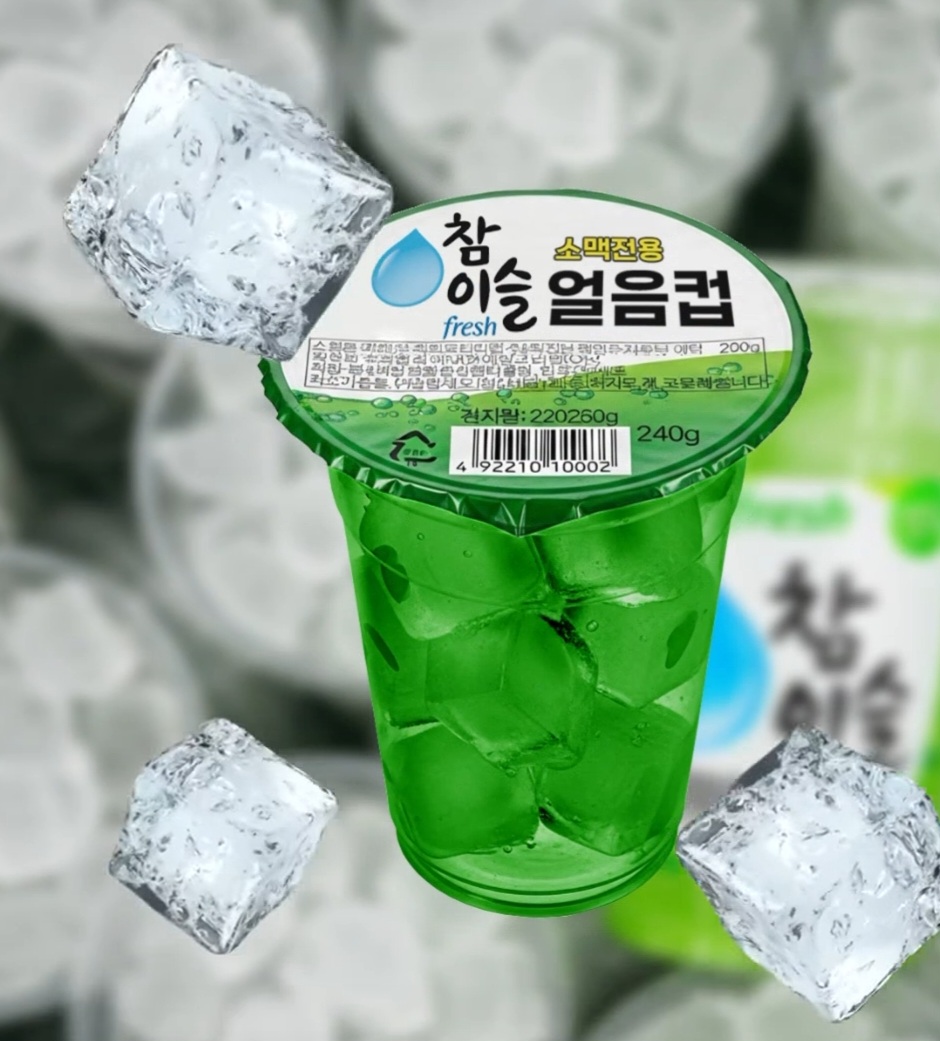 참이슬 얼음컵은 컵 안에 얼음이 가득 들어 있는 제품이에요.