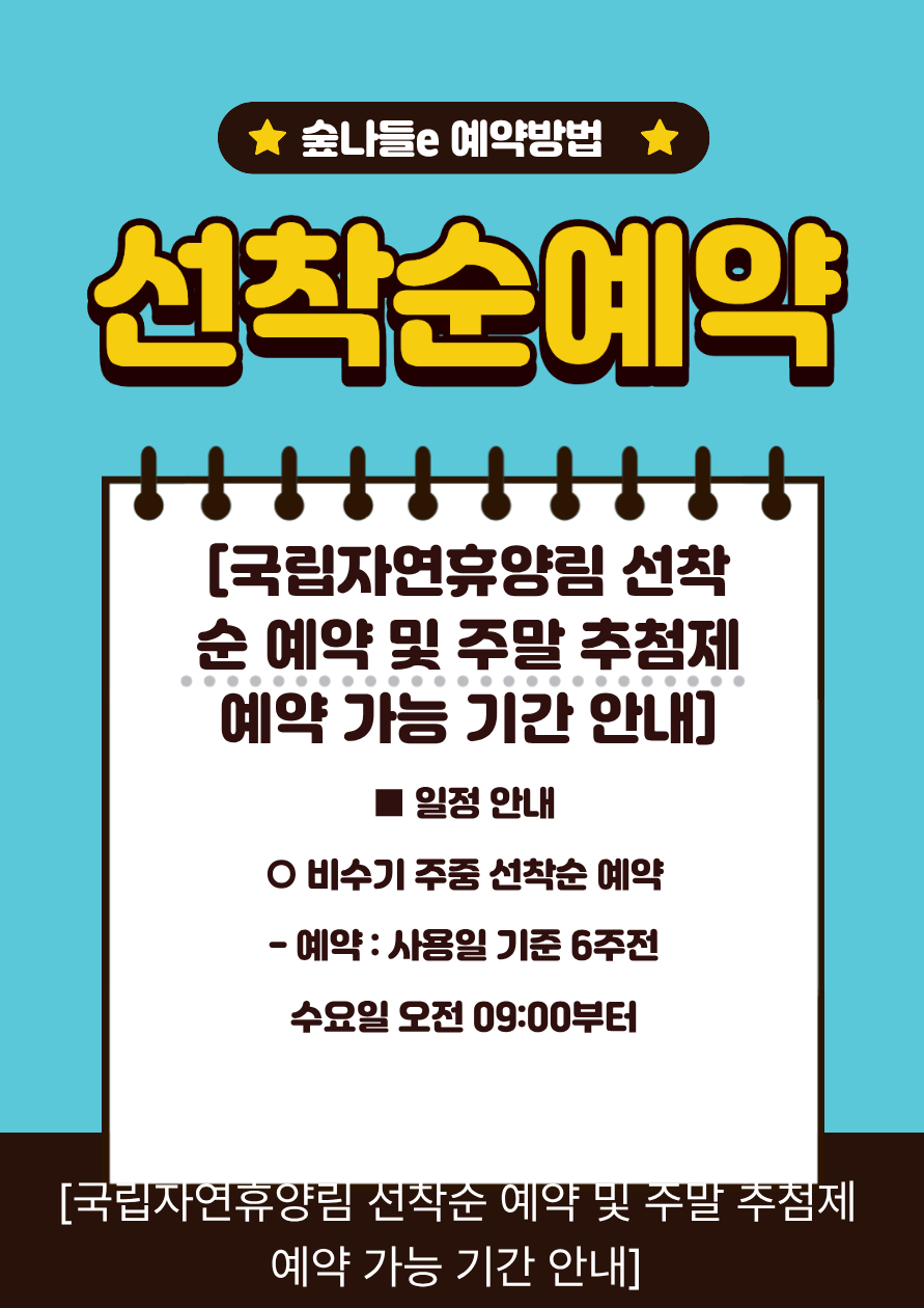 1.국립자연휴양림 선착순 예약 및 주말 추첨제 예약 가능 기간 안내