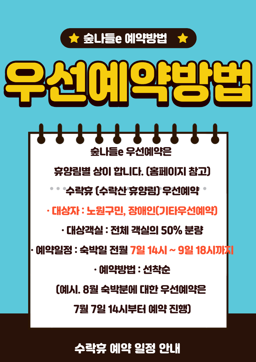 (예시. 8월 숙박분에 대한 우선예약은 7월 7일 14시부터 예약 진행)