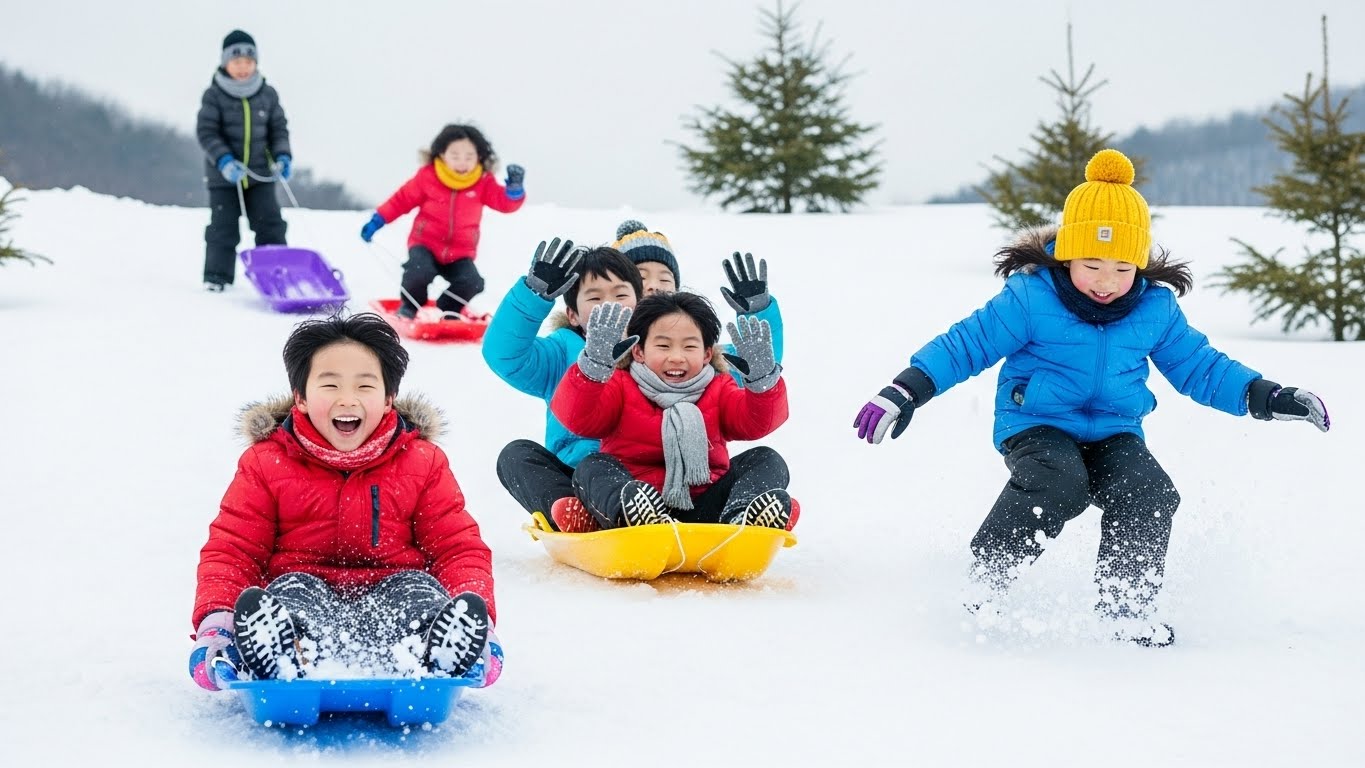 하얀 설원 위에서 느끼는 속도감, 아이 손 잡고 함께 타는 눈썰매 한 번, 차가운 공기 속에서 웃음이 터지는 순간들. 이 모든 게 겨울이 아니면 불가능하다.