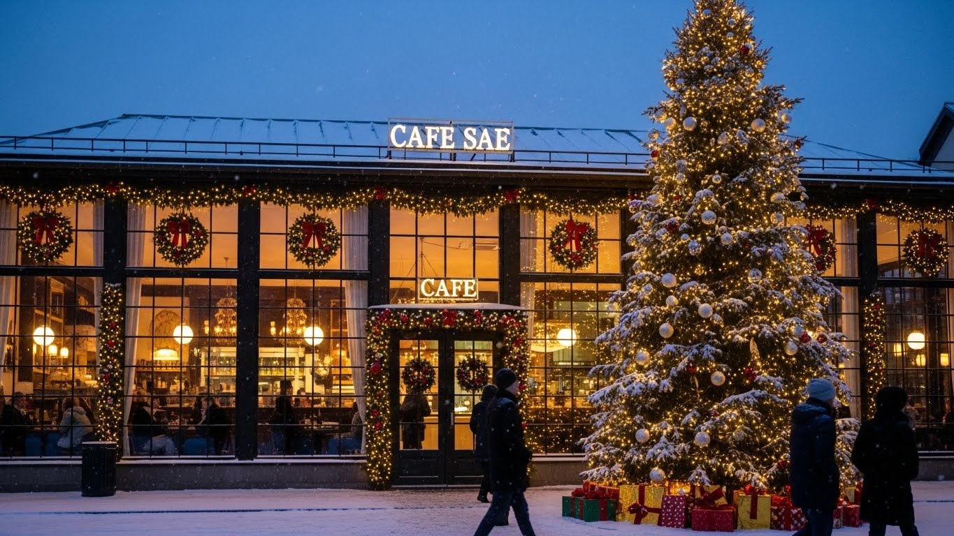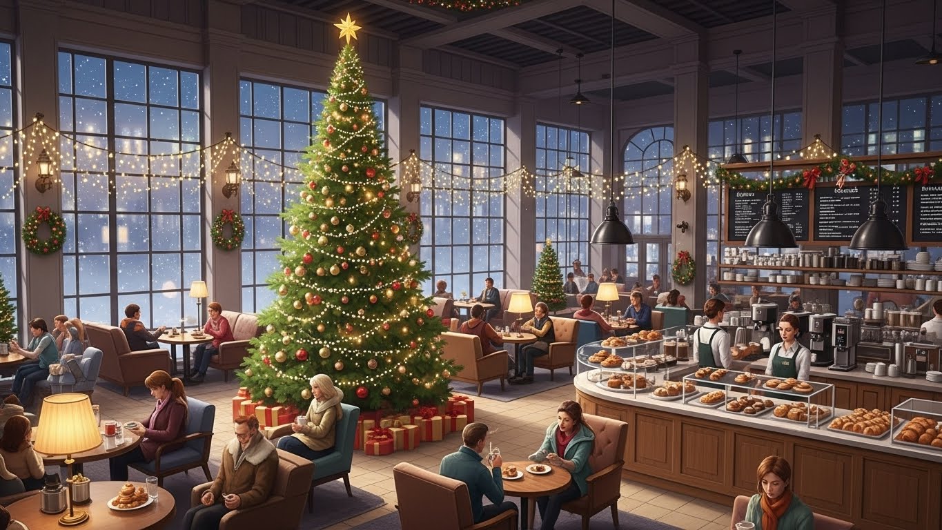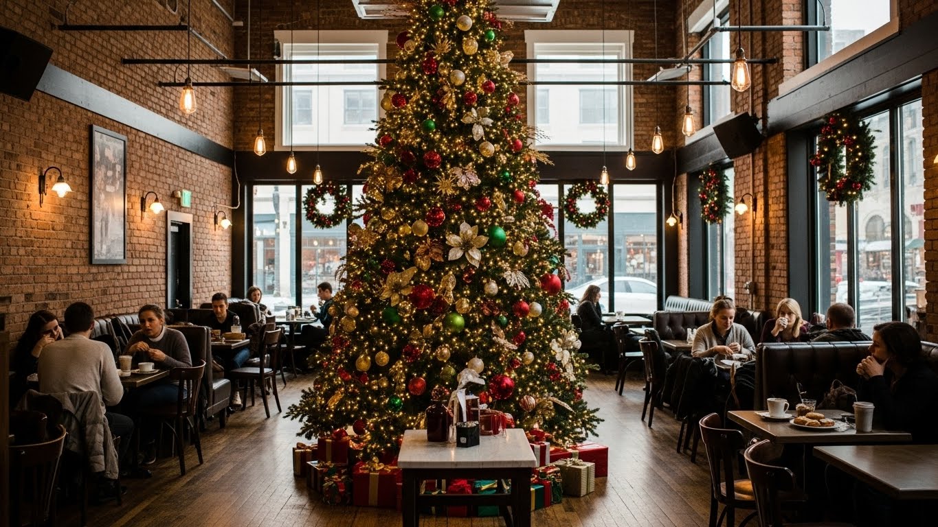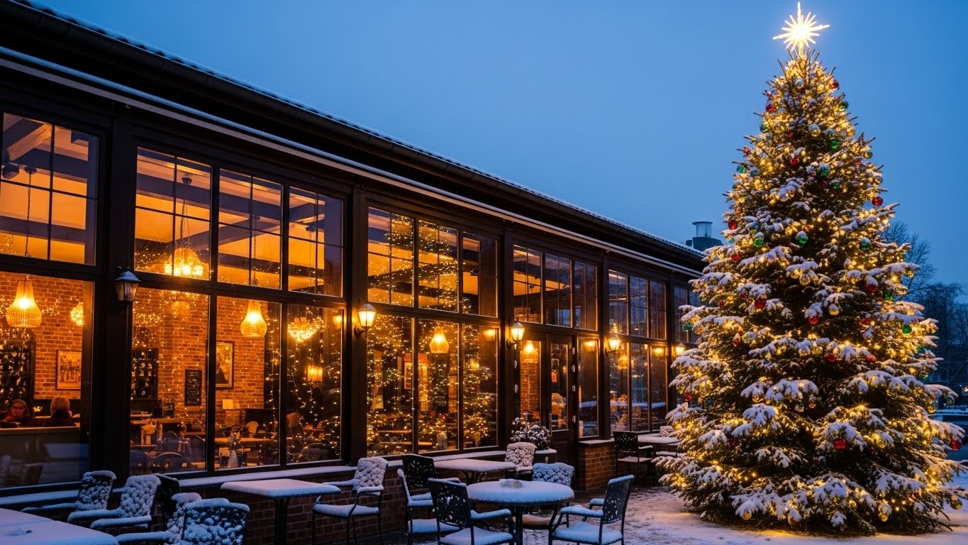 이곳은 높은 층고를 활용해 실내 중앙에 아주 커다란 트리를 배치해 두는데, 초록초록한 식물들과 반짝이는 트리가 어우러진 모습이 정말 장관입니다. 2층 브릿지에서 내려다보는 트리 뷰는 이곳의 시그니처 포토존이죠. 공간이 워낙 넓어 인파가 몰려도 답답한 느낌이 적고, 브런치 메뉴도 훌륭해 느긋한 크리스마스 오전 시간을 보내기 딱입니다.