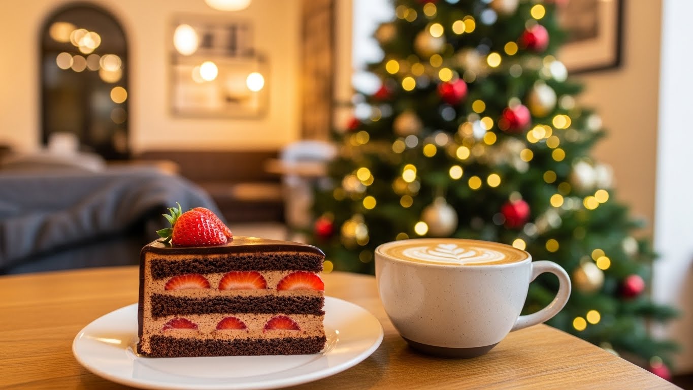 칼리오페의 크리스마스는 입구부터 시작되는 화려한 트리 장식과 웅장한 계단 조형물이 포인트예요. 천장이 아주 높아서 트리가 더욱 돋보이고, 어느 각도에서 찍어도 고급스러운 사진이 나옵니다. 직접 로스팅한 커피와 수준 높은 디저트를 즐기며 조용히 연말의 분위기를 만끽하고 싶은 분들에게 최고의 선택지가 될 거예요.