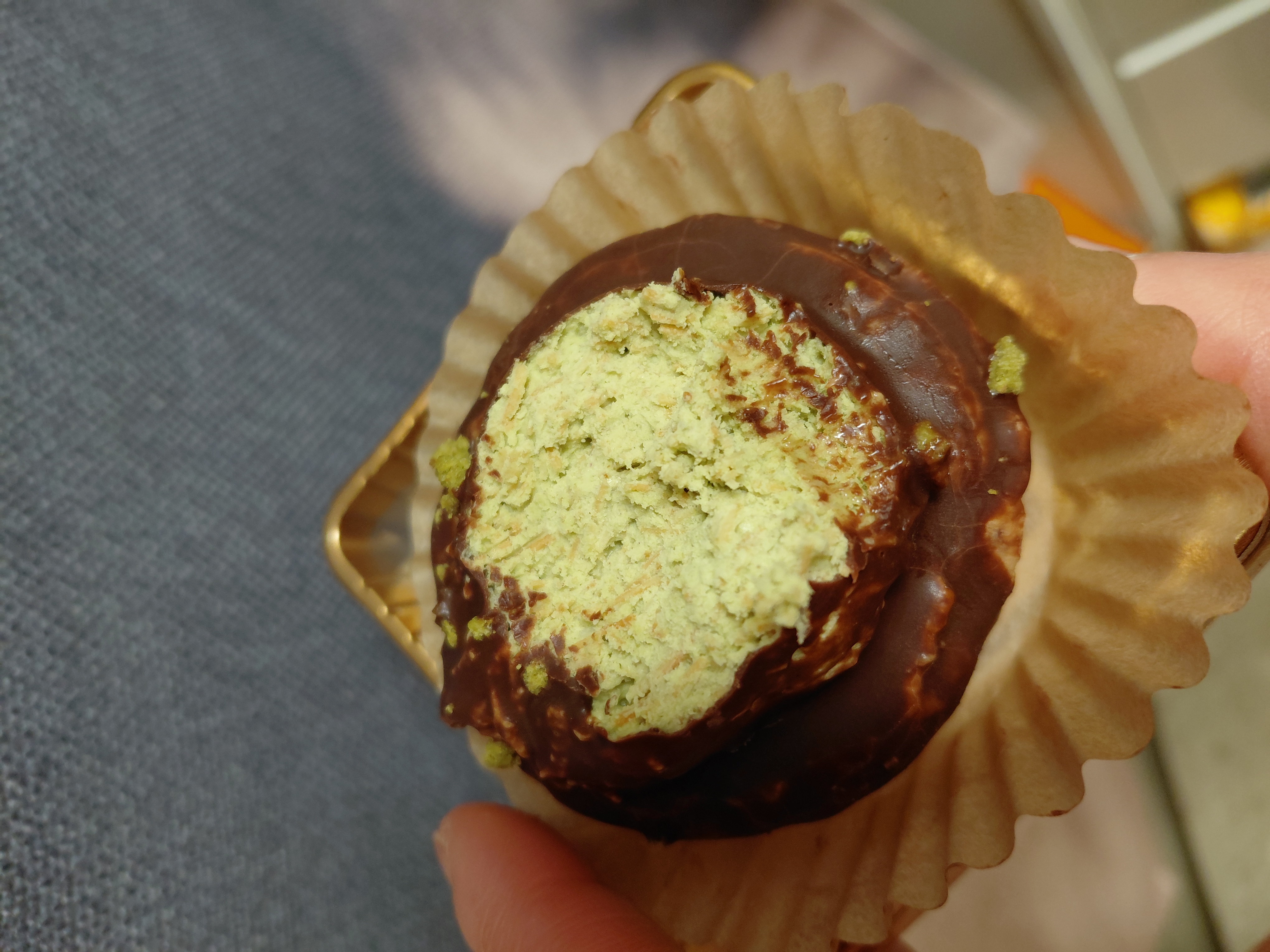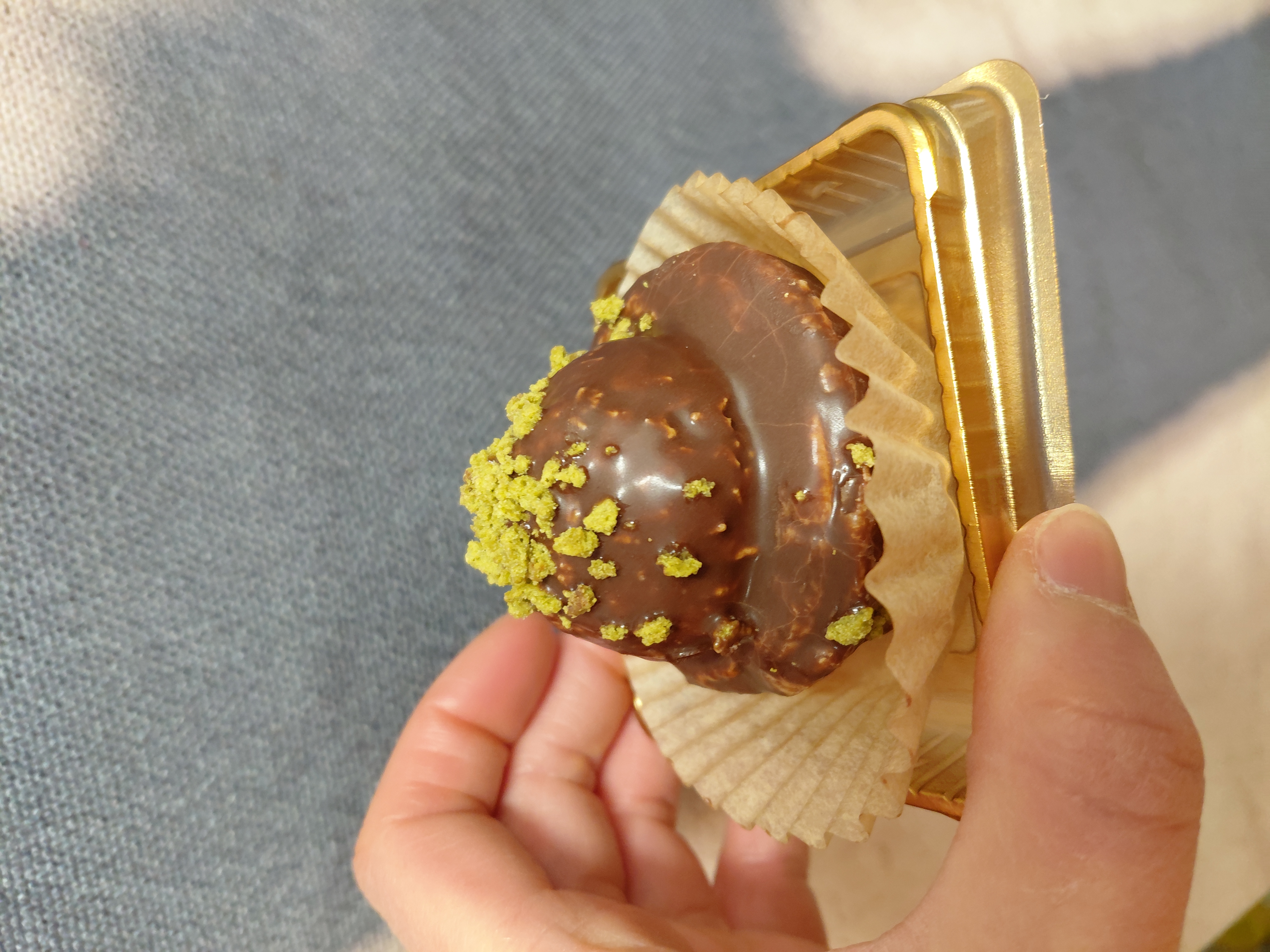 ■초콜릿 코팅: 겉면에 입혀진 초콜릿이 꽤 두툼해서 입안에 넣자마자 진한 초코맛이 먼저 느껴지고, 뒤이어 피스타치오의 고소함이 따라옵니